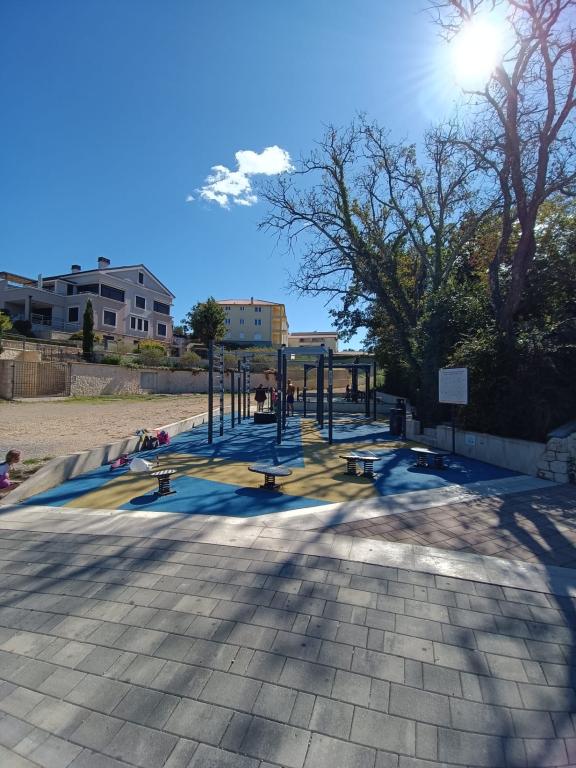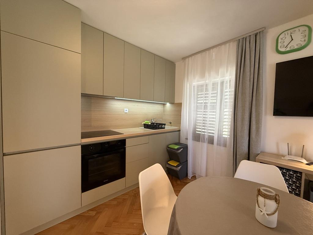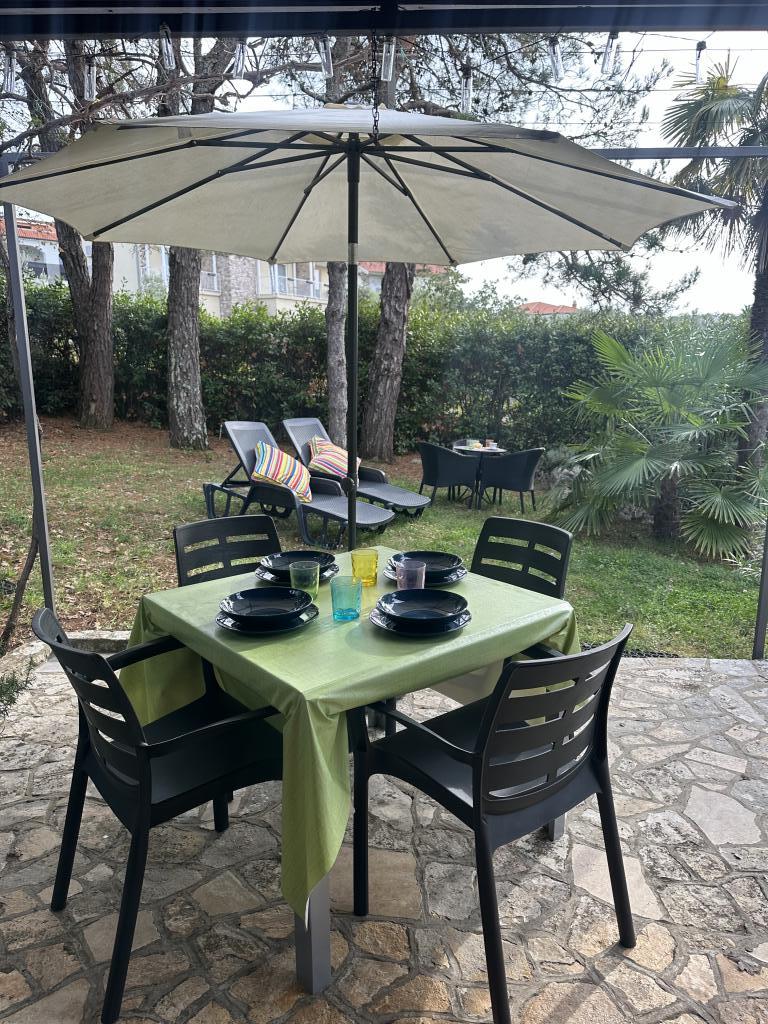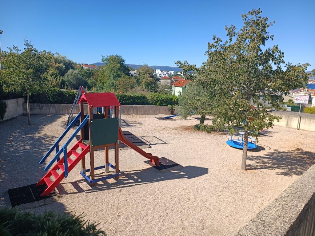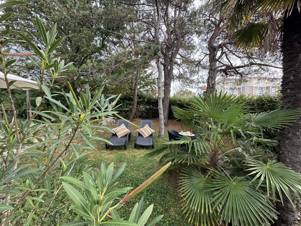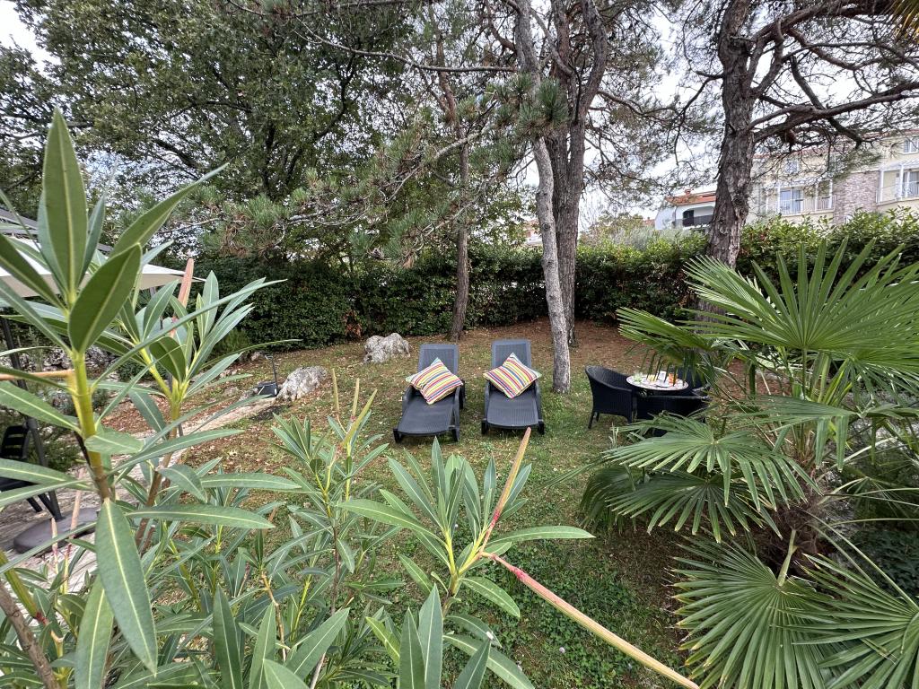 Apartmani 50m2 sa terasama i vrtom 200m2, nalaze se u mirnom predjelu 100m od mora i plaže uvala Rova. U sklopu nalazi se odvojeno privatno i sigurno parkiralište u hladu. U neposrednoj blizini dječji park, vodeni sportovi, teretana na otvorenom te mnogi restorani i beach barovi, šetnice uz more i biciklističke staze. U prostranom vrtu punom mediteranskog zelenila ugodno je boraviti kroz cijeli dan u hladu.