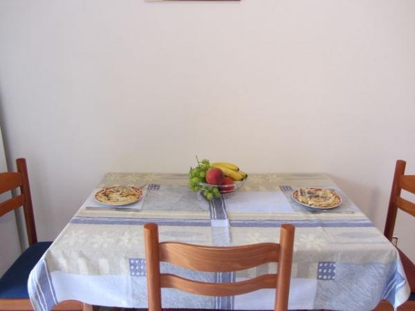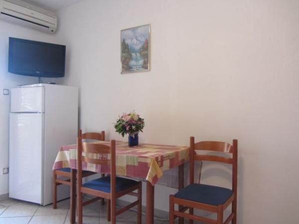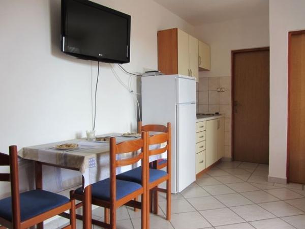 Apartmani su u potpunosti opremljeni: jedna spavača soba za dvije osobe s posteljinom, kupaonica sa ručnicima, dnevna soba sa 1-3 pomoćna ležaja, kuhinjom (suđe, veliki hladnjak), vlastita trasa ili balkon (sa pogledom na more), parking u dvorištu, vrt s mnogo zelenila, sjenica, roštilj, restoran je udaljen samo 20 metara, SAT TV LCD... Prijava i boravišna taksa su uključeni u cijenu. Boravak kraći od 4 noći skuplji je za 30%. Dijete koje ne koristi ležaj 10 €/noć. Korištenje klima uređaja 10 €/dan.