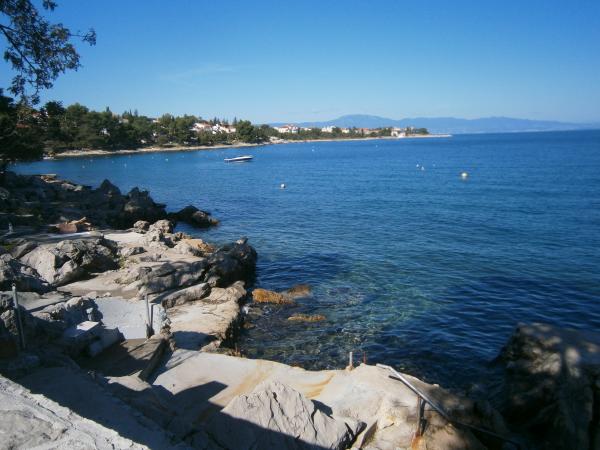 Apartmani se nalaze u malom, mirnom mjestu Vantačići 2 km udaljenom od Malinske do koje vodi lijepa šetnica uz samu morsku obalu. Također ista staza na drugu stranu vodi do malog ribarskog mjesta Porat udaljenog 1 km od Vantačića. Svaki apartman ima svoju terasu (10 m2 i 15 m2), a smješteni su u prizemlju objekta. U sklopu okućnice nalazi se roštilj, vrtna garnitura, vanjski tuš i parking za automobile. Parking za automobile zaštićen je od sunca nadstrešnicom od stabla kiwija i vinove loze. More je udaljeno 100 metara od apartmana i do njega vodi pješčana staza. Restoran, pizzeria i beach barovi nalaze se na obali u Vantačićima. Porat ima bogatu gastronomsku ponudu (riblji restoran, pizzeria, roštilj).