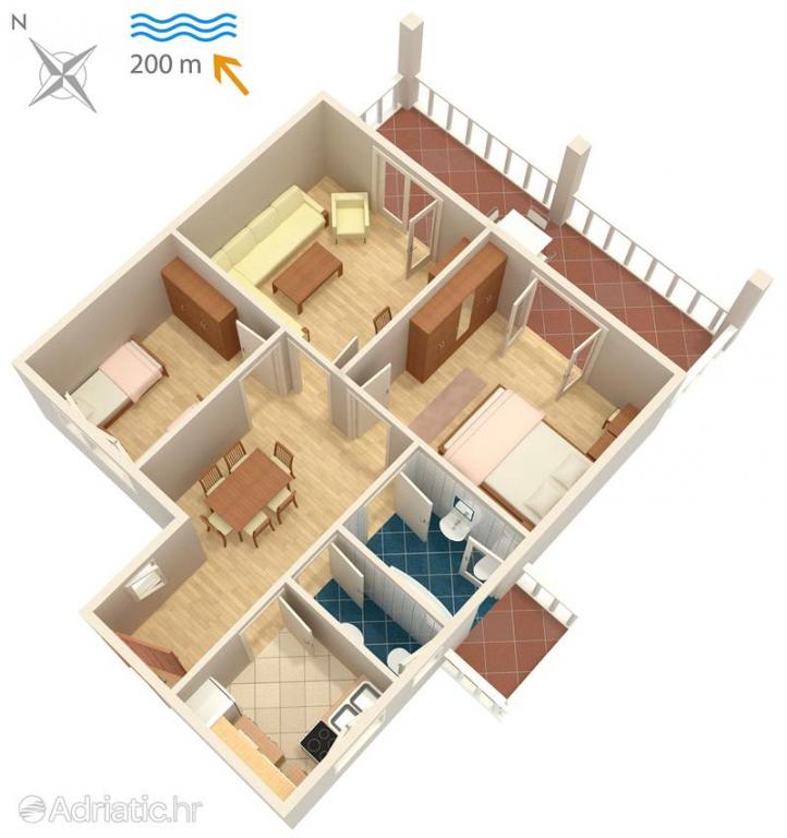 Apartmani Karmelić i nalaze se u mirnom dijelu Malinske u neposrednoj blizini mora i lijepo uređene plaže, a samo 10 minuta ugodne šetnje do centra. U objektu su jedan studio apartmana za 2 osobe te jedan apartman za 4- 6. do,Kategorizirani s 4*, kompletno opremljeni apartmani sa svim potrebnim za odmor i uživanje. U susjednom objektu žive domaćini koji su Vam svojom ljubaznošću i gostoprimstvom na usluzi kada to poželite. Za sve goste apartmana osiguran je parking u sklopu objekta, i besplatan WI-FI, korištenje zajedničke praonice rublja bez naknade te neograničeno korištenje zajedničkog grilla u vrtu. Plaža hotela Malin je samo 3 minute hoda od apartmana, i nudi bezbroj sadržaja za opuštanje i uživanje - od suncobrana i ležaljki, bara, restorana do sportova na vodi, a posebno uživaju djeca za koju su predviđena mjesta za igranje i bezbrižno kupanje. Mnoštvo organiziranih izleta po mjestima na Krku i okolnim otocima, bogatstvo kulturnih i zabavnih događanja učiniti će Vaš odmor nezab