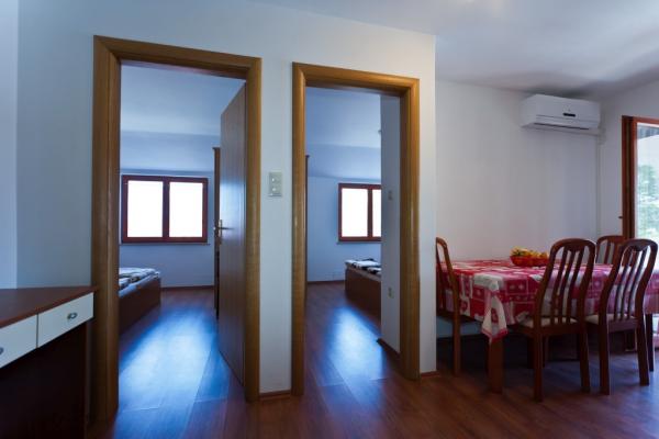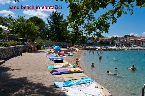 Kompletno i suvremeno opremljeni apartmani na mirnom mjestu (u slijepoj ulici) u malom mjestu Vantačići (2,5 km od Malinske) na otoku Krku. Kuća je na odličnoj poziciji za ljetovanje zbog toga što je od plaže udaljena svega 50 m i okružena je zelenilom, tako da je u ugodnoj klimatskoj zoni. Iznajmljujemo ukupno 4 apartmana, a za svaki je predviđen po jedno parking mjesto unutar naše okućnice u hladovini. Naša kuća je direktno povezana sa plažom pješačkom stazom, tako da i mala djeca mogu ići do plaže i natrag i bez roditelja. Na obali postoji lijepa šetnica (lungo mare) koja povezuje Porat, Vantačiće i Malinsku.