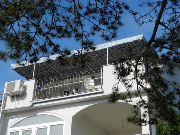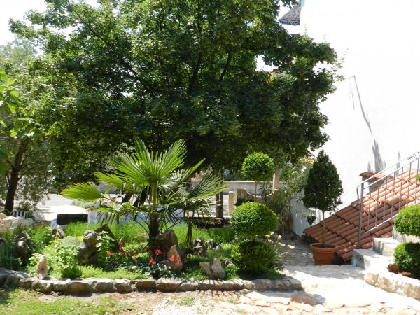 OBJEKT: Kategorija 3 zvjezdice. Ukupno 9 kreveta u 3 smještajne jedinice. Apartman je okružen otvorenim vrtom (veličine 500 qm) s drvećem, cvijećem i grmljem. Vlasnik je nastanjen u kući (sa posebnim ulazom). Za zajedničku uporabu stoji na raspolaganju: internet (WLAN), terasa, ljuljačka, gril, vanjsko ognjište i dvorište. APARTMANI: Apartman 3 sobe 45qm, za 5 osoba u suterenu ili Studio apartman na 1. katu, 1 soba, 25 qm, za 2 osobe. klima uređaj. Ulaz na 1. katu, preko vanjskog stubišta u hodnik dnevnu/spavaću sobu. vanjske stepenice natkrivene 1. kat: dnevno/spavaća soba (25 qm) s 1 dvostrukim ležajem, kutom za objedovanje (2 mjesta), tv-om, prilazom terasi (16 qm, natkriven, vrtni namještaj, 1 stol, 4 stolice, zajedno s dnevno/spavaća soba). kuhinjski s kutom za objedovanje, tv-om, električnim štednjakom, hladnjakom (pregrada za zamrzavanje), mikorvalnom pećnicom, mašinom za kavu, tosterom, električnim kuhalom za vodu i prilazom terasi. kupaonica (4 qm) s tušem, umivaonikom i wc.