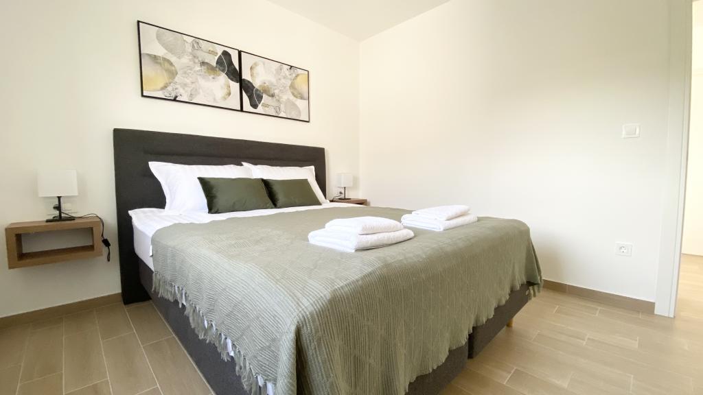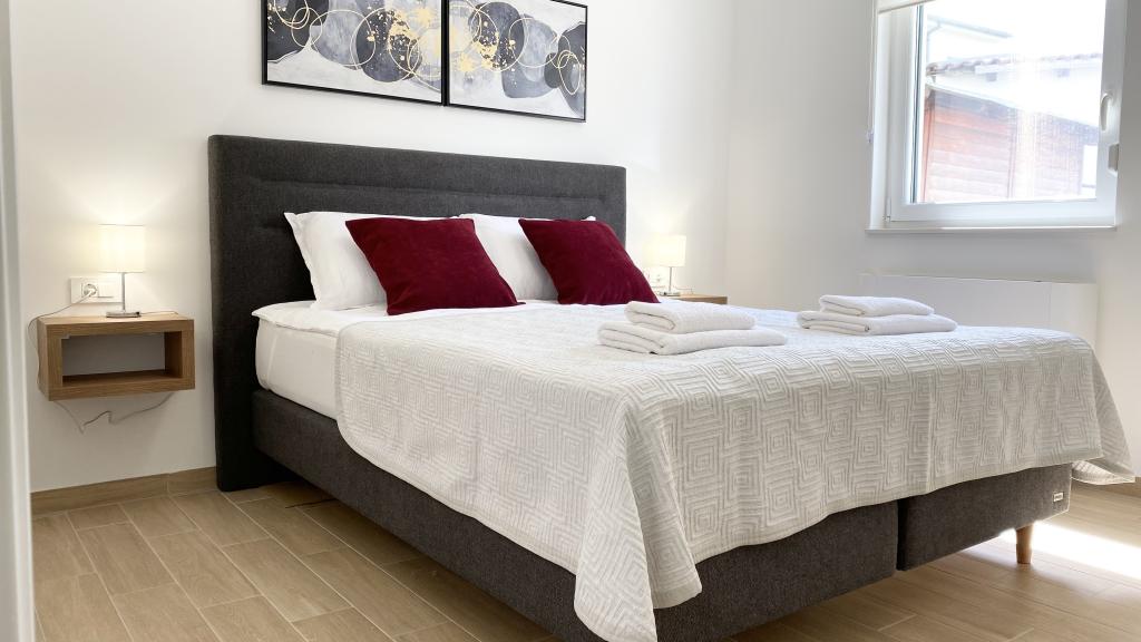 Vila Malina apartmanska je kuća smještena u mirnom dijelu naselja. Ima tri moderno opremljena apartmana od 50, 55 i 60 m2 s odvojenim ulazima te osiguranim parkirnim mjestima u dvorištu. Svaki apartman ima dnevni boravak, spavaću sobu, kupaonicu, kuhinju i natkrivenu terasu. U dnevnom boravku nalazi se trosjed na razvlačenje koji se koristi kao dodatni ležaj za dvije osobe. Kuhinja je opremljena posuđem, kuhinjskim krpama, pećnicom, mikrovalnom peći, hladnjakom sa zamrzivačem, kuhalom za vodu, električnim štednjakom, tosterom i perilicom posuđa. Dodatna oprema uključuje internetsku vezu, klima uređaj, usisavač, perilicu rublja i sušilo za kosu. Besplatan dječji krevetić dostupan je na upit. Za boravak u trajanju od 10 ili više dana ostvaruje se popust od 10%.