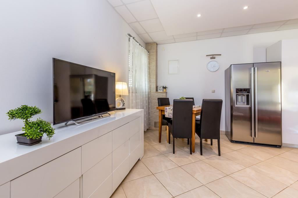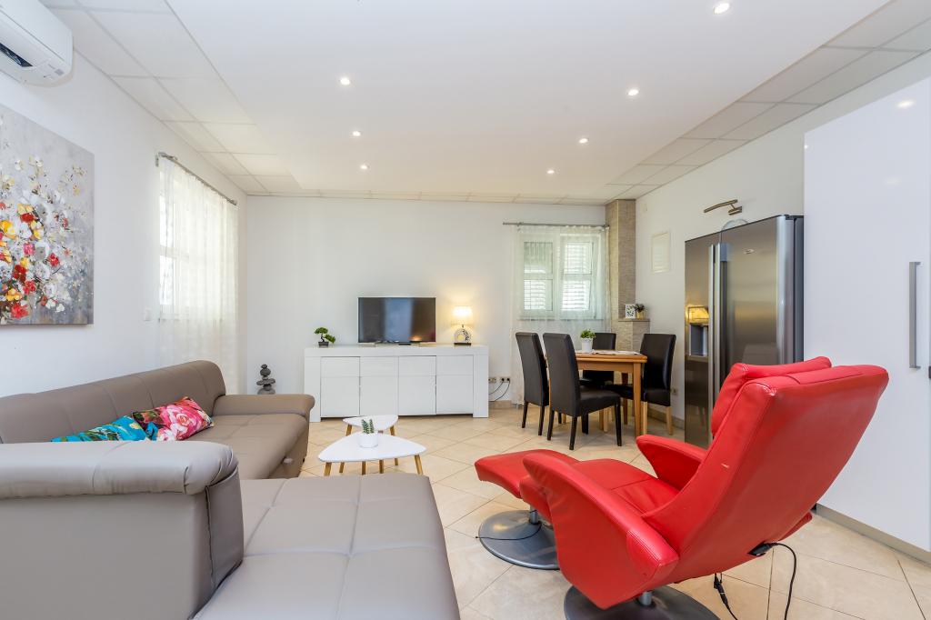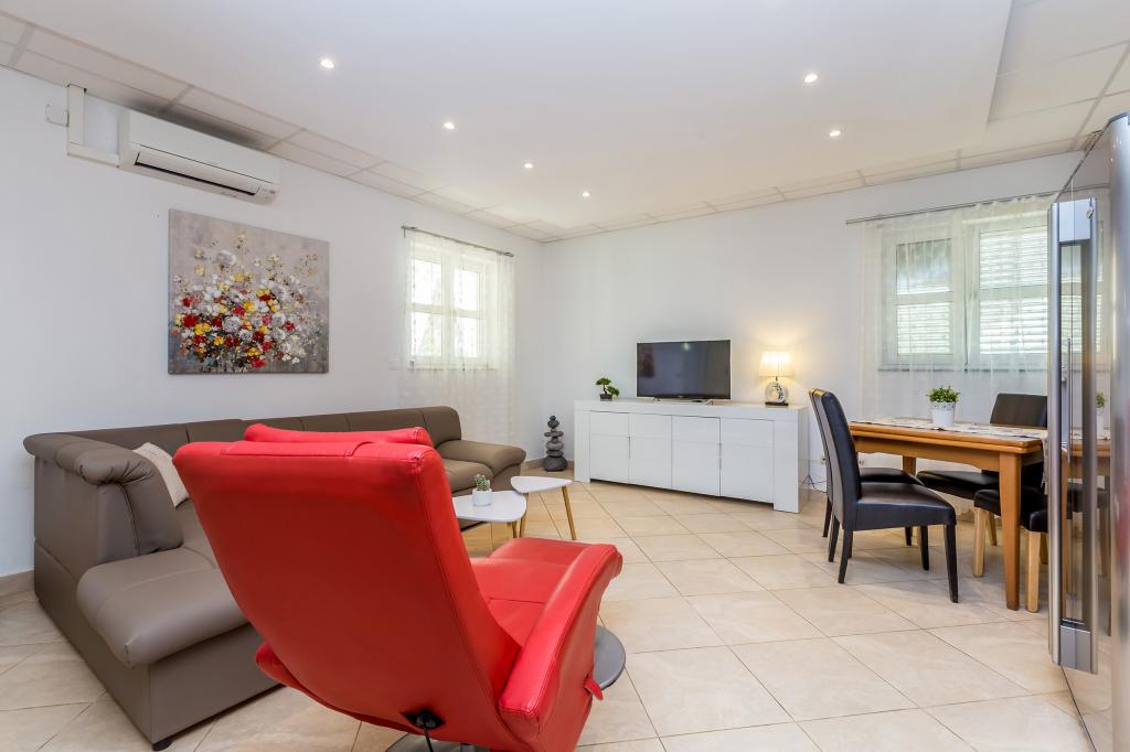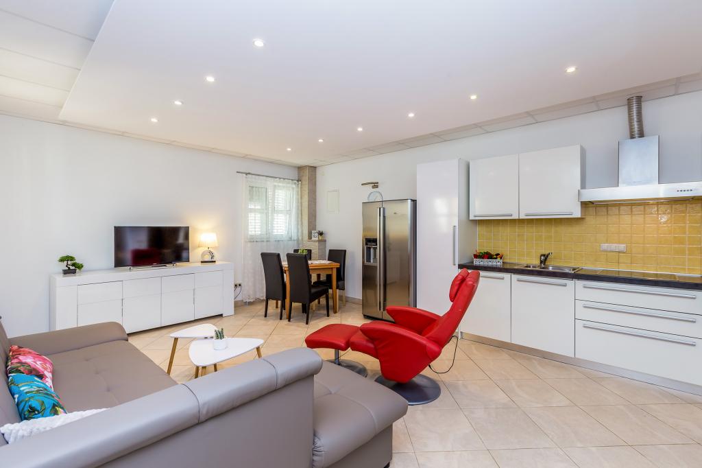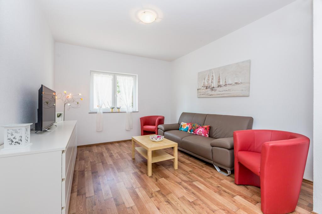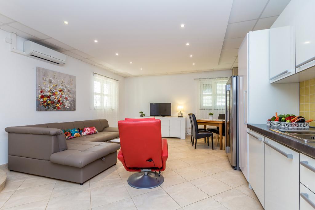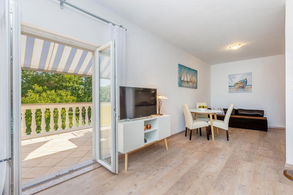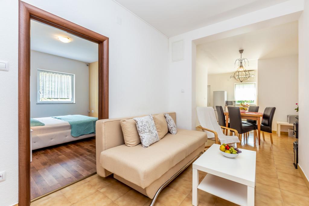 Pročitaj više Smještajne jedinicePlaćanje 150 Eura nepovratno po rezervaciji preko bankovnog računa, ostatak po dolasku u smještaj. Rezervacija važi od trenutka prispijeća iznosa na bankovnom računu. Kućni ljubimci dozvoljeni su u Apartmanu 2+2 i u Apartmanu 4 koji se nalaze u prizemlju. Jedan (1) po Apartmanu. Kućni ljubimci ne mogu ostati sami u Apartmanu. Naknada za kućnog ljubimca je 5 Eura do 5 kg, ostali 8 Eura na dan. U kući imamo vešeraj, mi ćemo vam rado oprati rublje uz naknadu od 5 Eura po pranju. Vrijeme odlaska do 10.00 h Vrijeme dolaska od 15.00 h Završno čišćenje za Studio 50 Eura i za Apartman 65 Eura Klima, parking, ručnici i posteljina uključeni su u cijeni. Boravišna pristojba plaća se prema cjeniku općine Malinska. Boravisna taxa iznosi za 2024 g 1.80 Euro po odrasloj osobi po danu i nije uracunata u cijenu