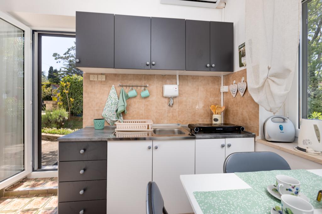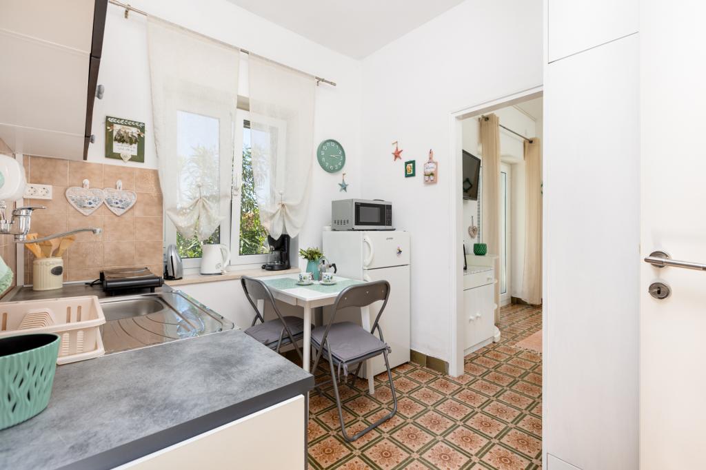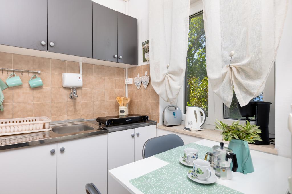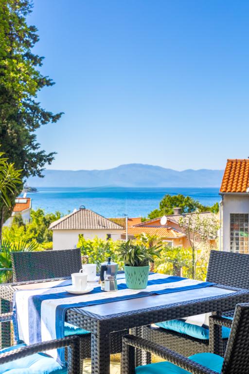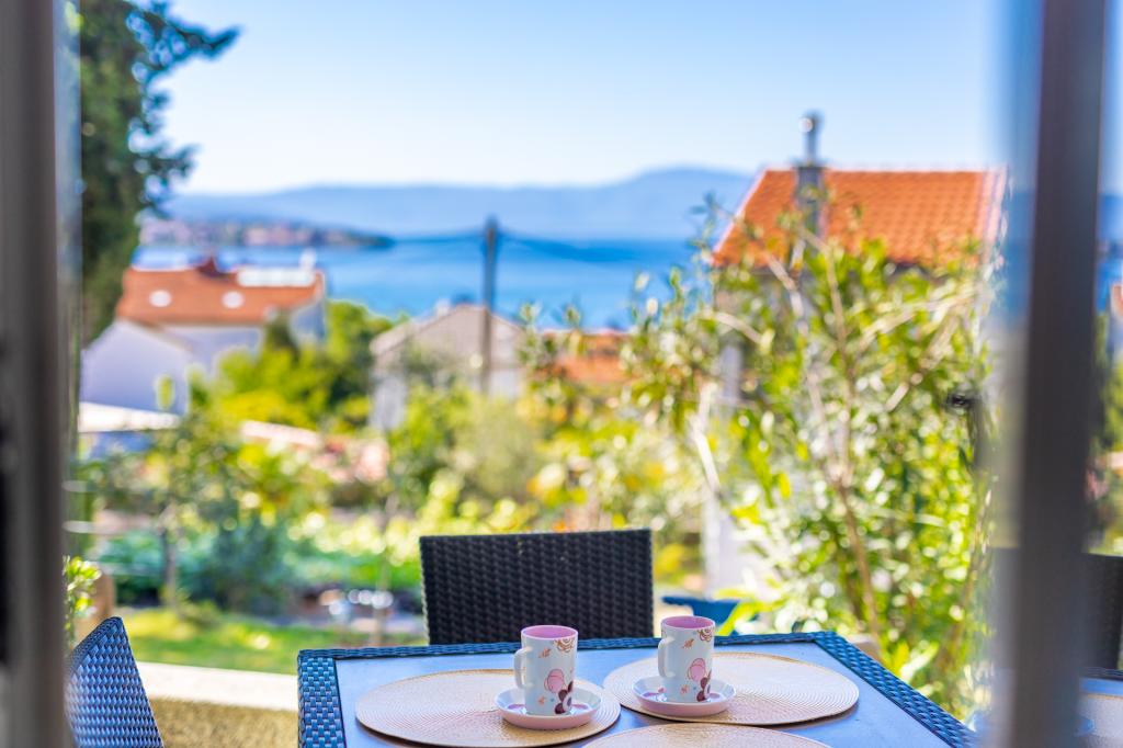 Bili smo drugi put i sigurno ćemo opet doći. Smještaj je savršeno čist, jako dobro opremljen i uređen, domaćini divni. Pogled na more s verande, idealno za večernje sjedenje. Parkiranje bez muke. Posebno preporučljivo ako volite životinje, pse i mačke Do vode je potrebno nekoliko minuta, dijelom uz stepenice i/ili uzbrdo. Uz plažu nedaleko od smještaja nalazi se i pekara, trgovina i bar. Najbliži restoran cca. 10 minuta pješice, do ruba grada (sa apsolutno fantastičnim restoranom "Primorska koliba") oko 15 minuta.