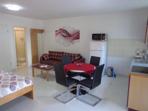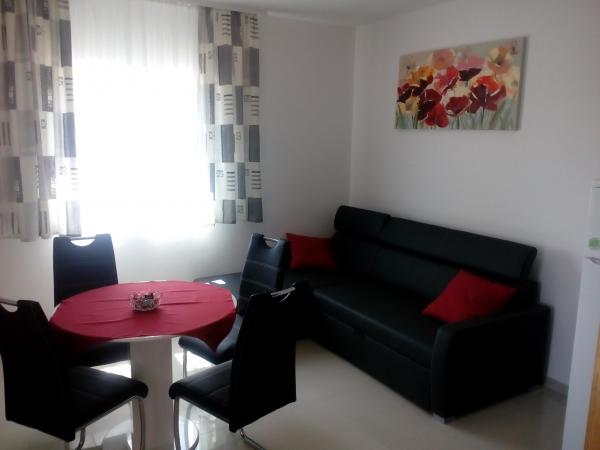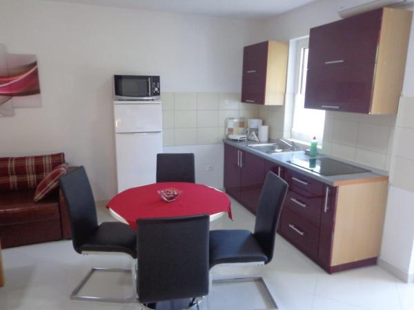 Apartman je jako lijep, čist, opremljen sa svime što vam treba. More i plaža su blizu, postoji i trgovina, jedna udaljena 550 m je malo veća. Preporučujem. Vratit ćemo se. Vlasnik Dragan je vrlo uslužan i ljubazan. Parkirno mjesto je uređeno.