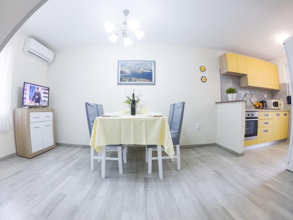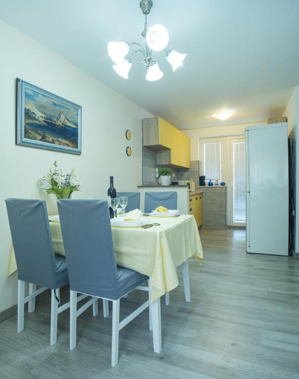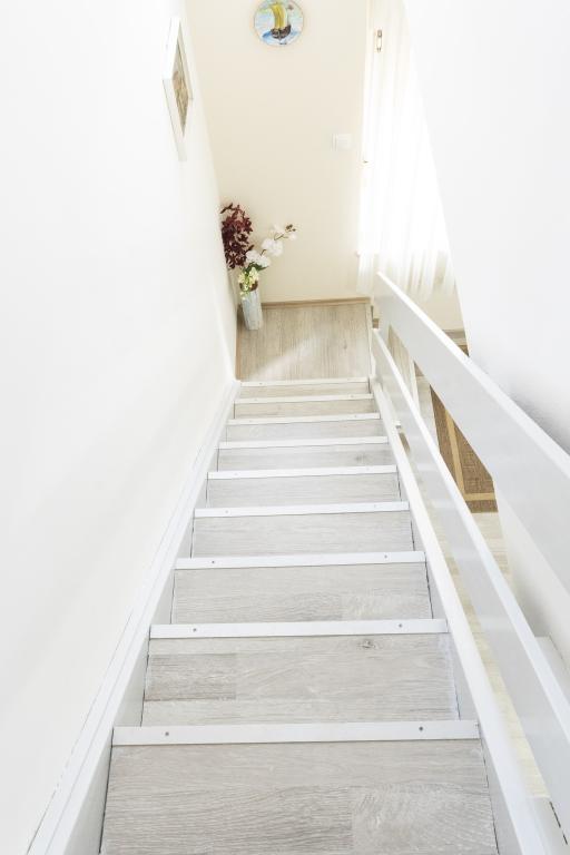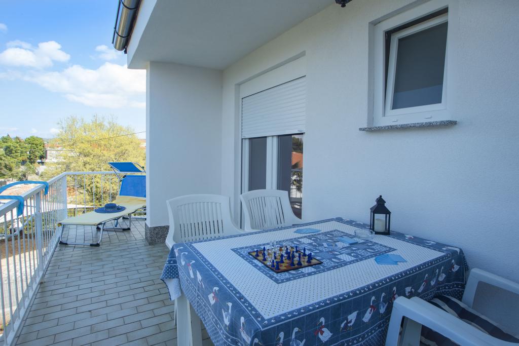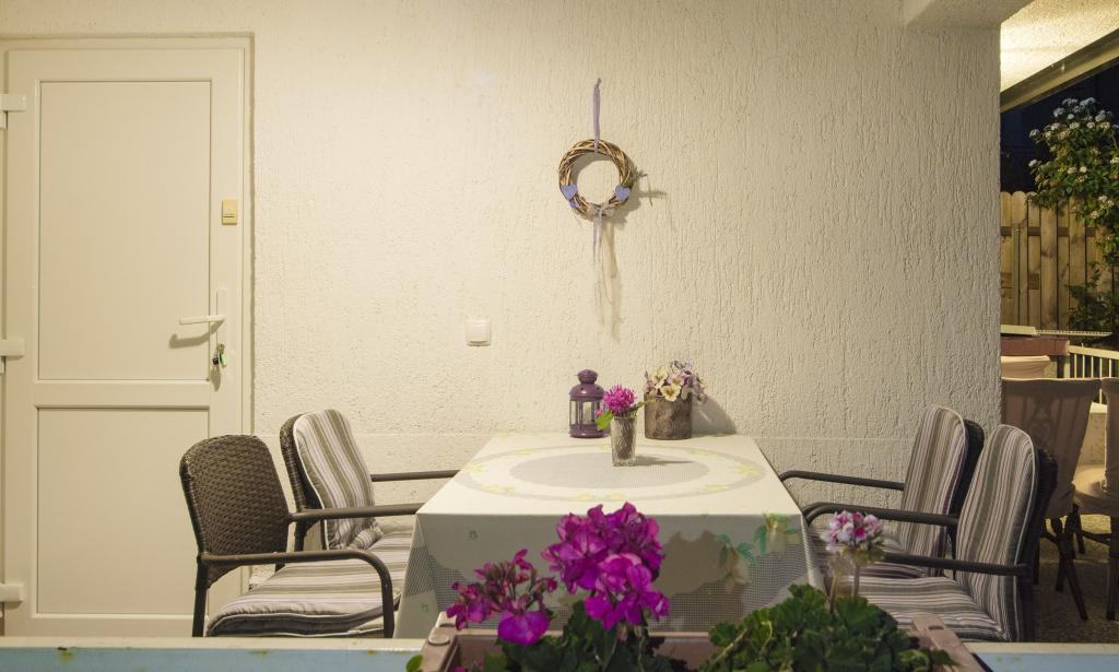 Novouređena kuća za odmor. Potpuno opremljeni cetverokrevetni dvoetažni apartman sa vlastitim parkingom i vrtom. Sastoji se od terasa, balkona, kuhinje sa blagavaonicom, , kupaonica/wc uprizemlju, te dvije spaaće sobe sa bračnim ležajem, dodatni wc i velika opremljena terasa na 1. katu. Kuća je smještena na kraju slijepe ulice koja nije prometna. Pored kuće je parking. a ispred vrt sa grilom, vanjskim tušem. Od kuće vodi staza do plaže, udaljene svega 3 minute hoda. Produžite li dalje šetnicom, za desetak minuta stižete u centar grada, prolazeći uz brojne restorane i caffe barove, ali i dječije igralište, gdje možete predahnuti uz osveženje. U večernjim satima, Malinska i okolna mjesta na otoku nude koncerte, izložbe i druge sadržaje za sve uzraste