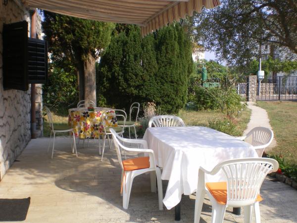 Kuća za odmor u Malinskoj(otok Krk)građena u mediteranskom stilu, sa velikim vrtom, parkingom, vanjskim tušem i grilom. Kuća je u centru grada. Do plaže ima 200m zračne linije. U blizini je restoran, market, bankomat. Kapacitet kuće je 6- osoba. Teren je bez uspona, kuća se nalazi u mirnoj ulici samo sa obiteljskim kućama. Idealno za obitelji sa djecom ili za starije osobe koje vole mir i zeleniloj. Kuća ima 2 terase u prizemlju i balkon na katu. Ima 2 dnevne sobe, 2 spavaće sobe, 2 kuhinje, 2 kupaonice.