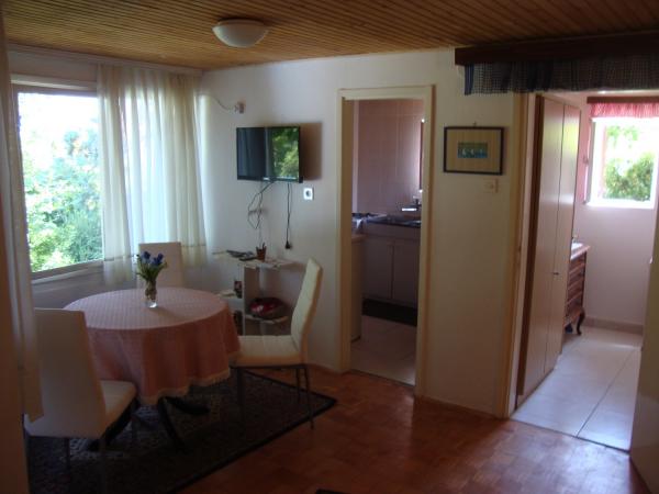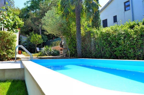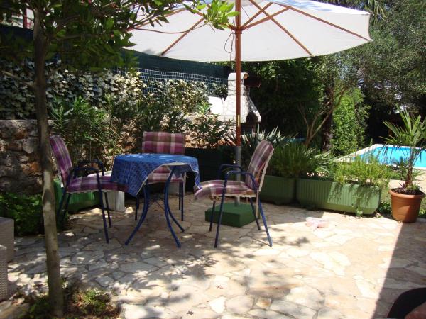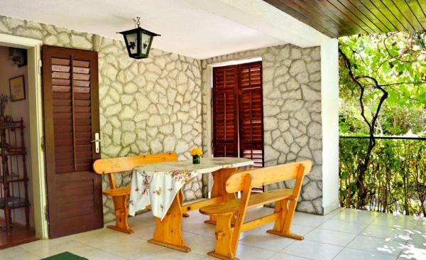 Kompletno i suvremeno opremljena vikendica sa velikim i njegovanim parkom od 700 kvadrata u mirnom dijelu Malinske. Kuća je izvrsno pozicionirana tako da je 100 metara zračne linije udaljena od mora, a svega 5min šetnje do centra mjesta. U neposrednoj blizini nalazi se dućan, restoran, te hotel sa sportskim sadržajima. Apartman se sastoji od spavaće sobe sa dva ležaja, dnevnog boravka sa dva pomoćna ležaja i garniturom za blagovanje, kupaonice i kuhinje. Iz dnevnog boravka se izlazi na veliku natkrivenu terasu. Kuća ima dva velika parkirna mjesta, vanjski tuš, bazen 6x3m i grill.