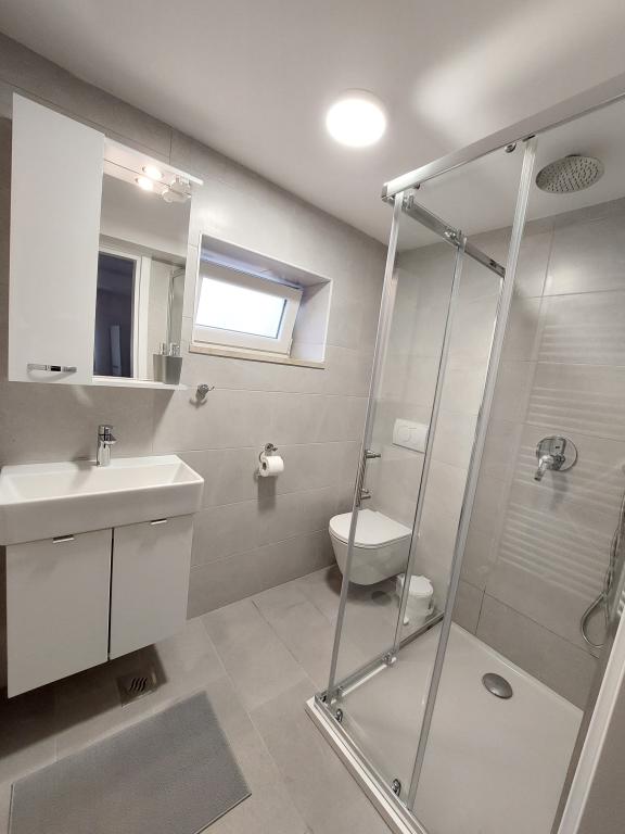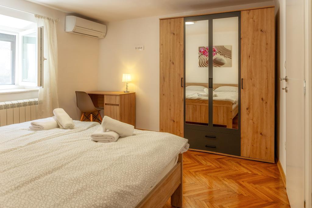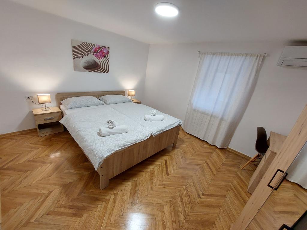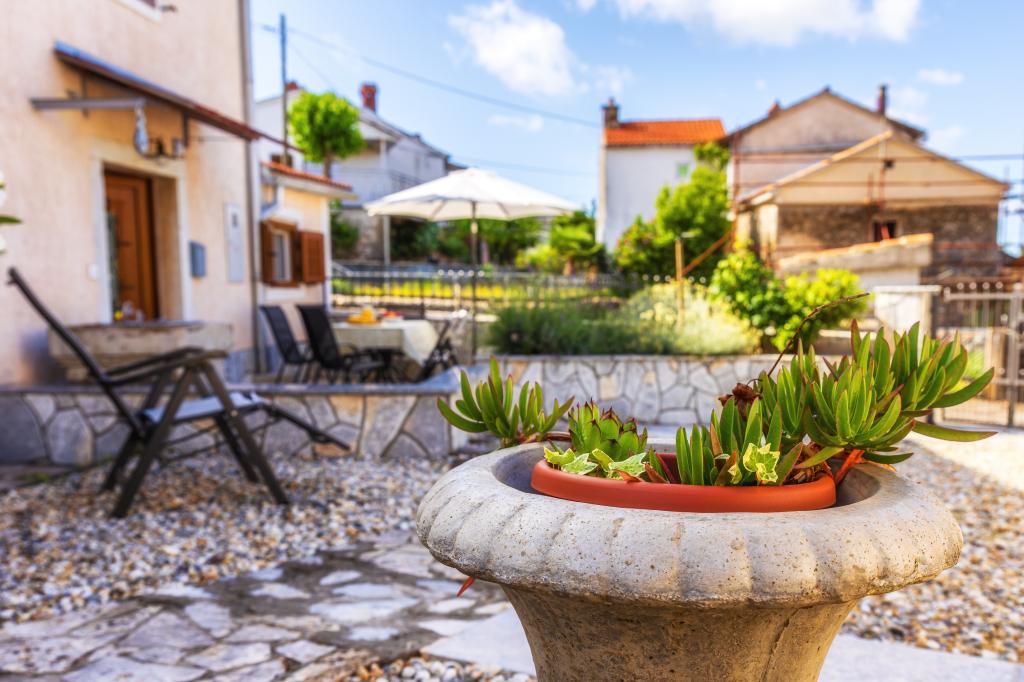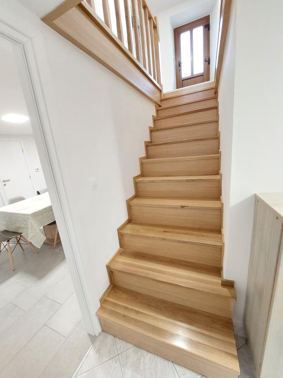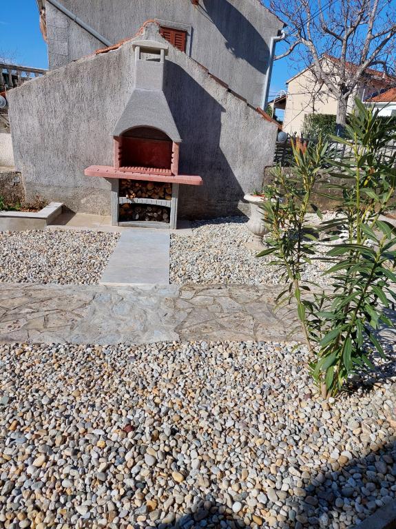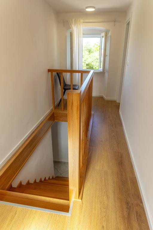 Novo renovirana kuća za odmor s pogledom na more. Može primiti 6 osoba u 4 spavaće sobe. U prizemlju dominira veliki otvoreni dnevni boravak, blagovaonica i potpuno opremljena kuhinja. Na istoj etaži nalazi se spavaća soba sa bračnim krevetom i 2 kupaonice. Stepenice vode na gornji kat na kojem se nalaze 3 spavaće sobe, jedna spavaća soba sa bračnim krevetom i 2 spavaće sobe sa krevetom za jednu osobu. Vani se nalazi roštilj sa dodatnim stolom i stolicama. U dvorištu je parking za 2 vozila. U blizini je dječje igralište.
