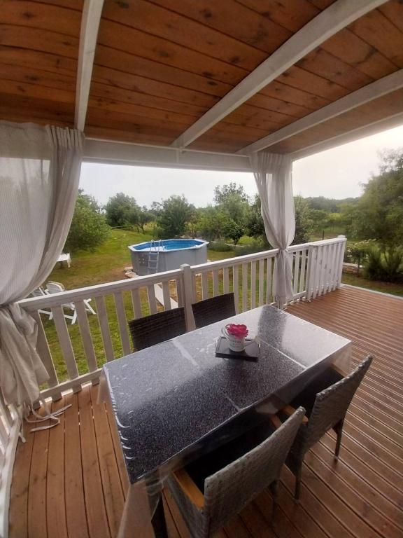 Boravili smo ovdje 5 dana nas dvoje i naš pas i stvarno smo se lijepo odmorili i uživali. Mir i tišina, bazen odličan, okućnica lijepo uređena i ograđena, kućica dobro opremljena, udobna, ima sve šta treba. Lokacija je odlična, u Puli si za 10 minuta. Definitivno preporučujemo smještaj!