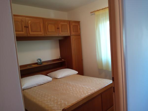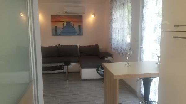 P i P novoizgrađen moderno opremljen apartman. Smještajnog kapaciteta za 2 osobe plus 2 pomoćna ležaja (veliki kauč na razvlačenje). Kuhinja je opremljena svim potrebnim kuhinjskim pomagalima: kuhinjski pribor za jelo i pripremu hrane, kuhalo za vodu, hladnjak s ledenicom, aparat za kavu. Gostima Besplatno nudimo: Wi-Fi internet, Klima, Čista posteljina i ručnici, toaletni papir, sapun deke, Parking, korištenje vanjskog roštilja i okućnice. Apartman je okružen borovom šumom a s terase se puža prekrasan pogled na more. Udaljen je od susjednih kuća. Idealan je za miran obiteljski odmor. Plaža je udaljena 5 minuta hoda, prikladna za malu djecu, a sadrži sve popratne sadržaje za rekreaciju.