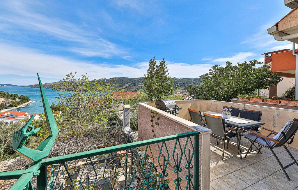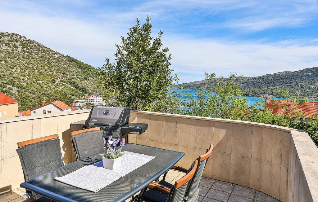 Uživajte u potpuno uređenim apartmanima s pogledom na more, 200 metara iznad šljunčane plaže na idealnoj lokaciji za istraživanje ljepota Dalmacije, između Splita i Šibenika.