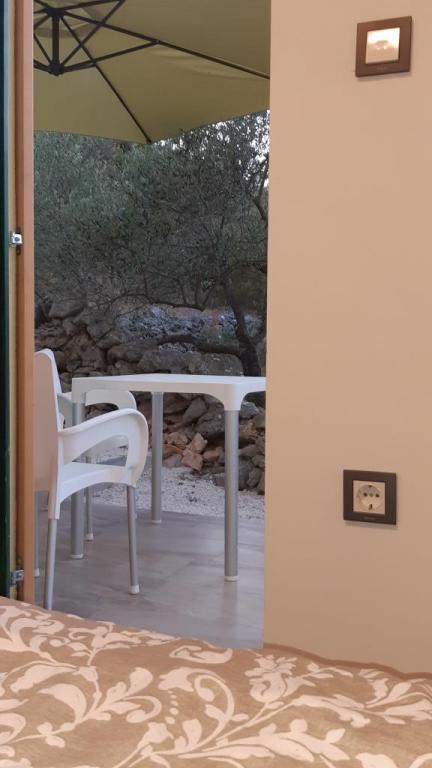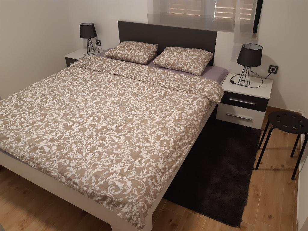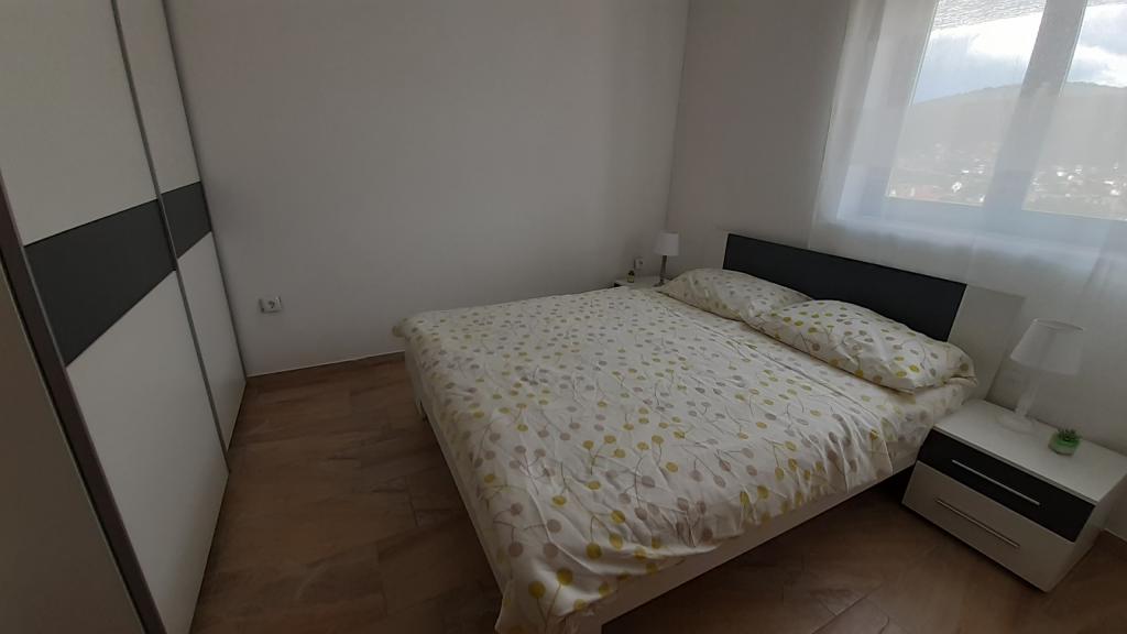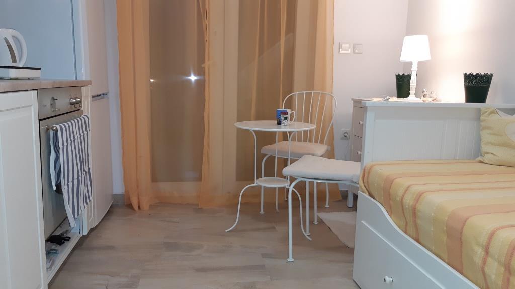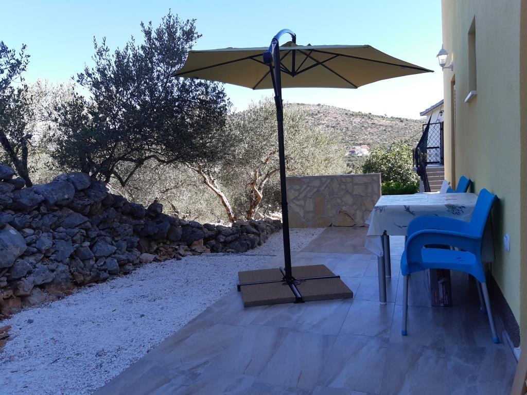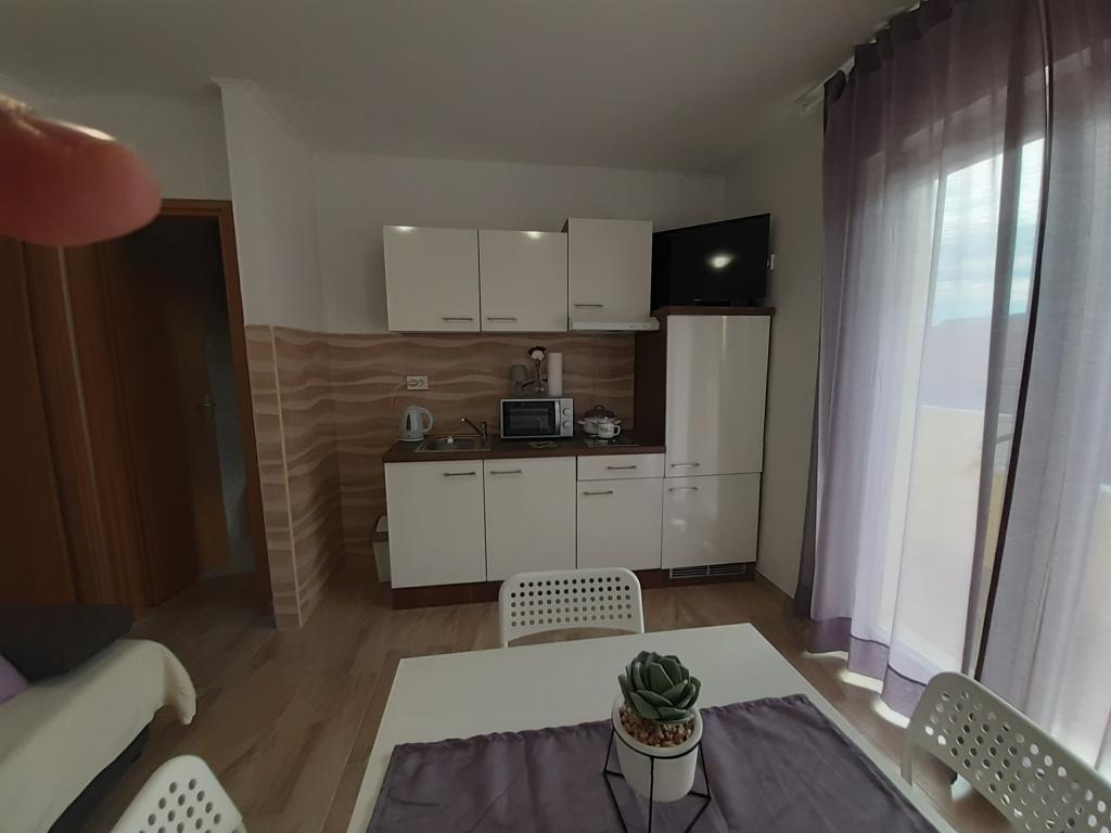 Apartmani se nalazi u samostalnom objektu renoviranom 2020. godine koji ima samo 4 apartmanske jedinice- svaki studio apartman za 2 2 osobe, u mirnom dijelu okružen dalmatinskim zelenilom. Apartman se sastoji od 1 spavaće sobe (bračni krevet 160x200), boravka (s krevetom na razvlačenje u ležaj 140x200) s kuhinjom (opremljena frižiderom, pločom za kuhanje, mikrovalnom i kuhalom te ostalim potrebnim priborom), kupaonice s tušem te perilicom rublja. Apartman je klimatiziran i ima besplatan WiFi. Balkon je prekrasan za jutarnju kavu uz izlazeće sunce ili navečer uz čašu domaćeg vina i svjetla Marinskog zaljeva. U dvorištu je moguće sjesti u sjenu masline ili suncobrana okružen maslinama, smokvama i drugim izvornim dalmatinskim zelenilom. U dvorištu je osiguran parking. Smještaj je nedaleko centra mjesta (5) s trgovinama, poštom, pekarom i ljekarnom te ambulantom i zubarskom ordinacijom te restoranima i caffe barovima, blizu starog središta s povijesnom kulom-simbolom tradicije (10)