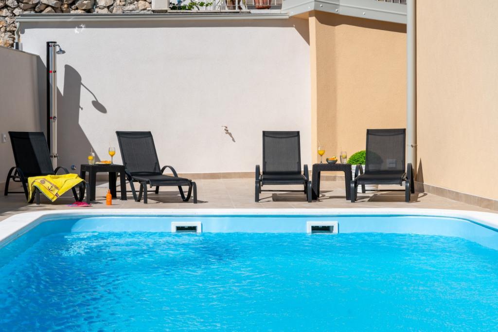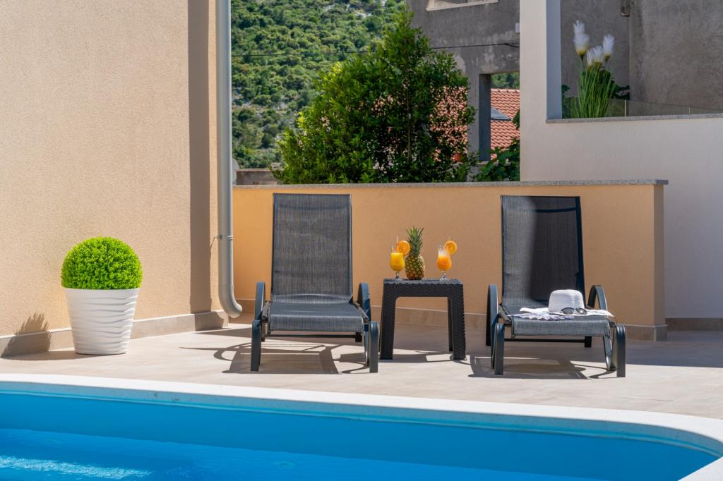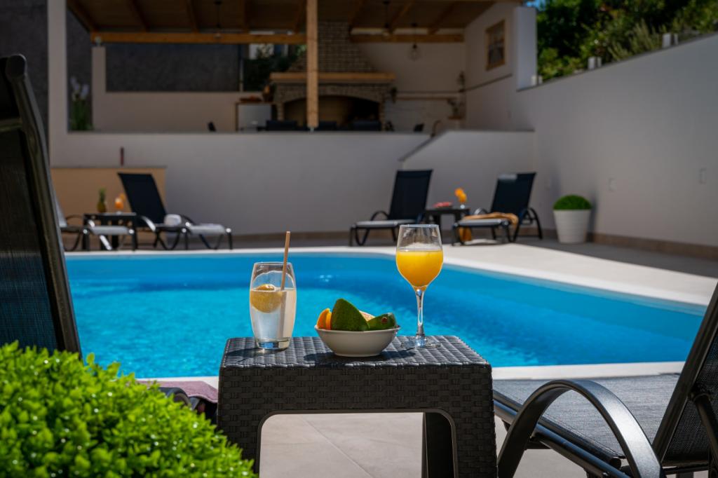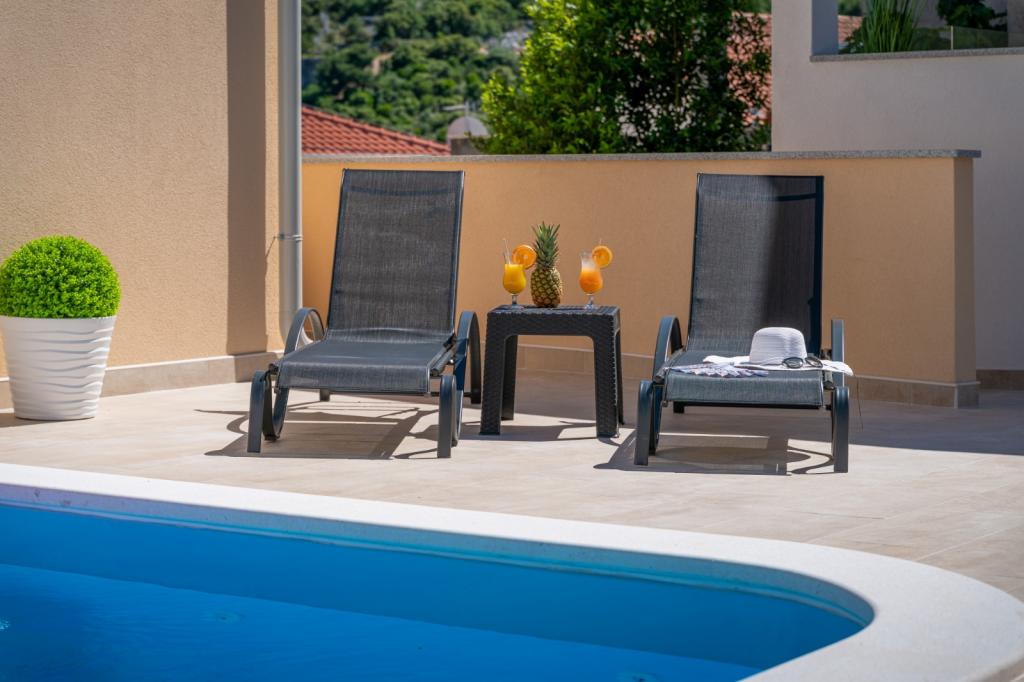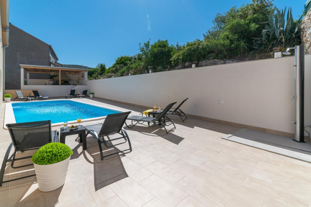 Vjerojatno jedan od najboljih smještaja u Hrvatskoj. Sve je vrlo dobro održavano, potpuno opremljeno, moderno i klimatizirano. Uz bazen se nalazi terasa s potpuno opremljenim roštiljem. Uz bazen se nalaze ležaljke, tuš i WC. Pogled iz vile je fantastičan. Vlasnica, Marina, divna je i topla osoba. Bila je vrlo uslužna i čak nas je dočekala s lokalnim mesom, sirom i kruhom. Plaža (šljunčana) je doslovno udaljena dvije minute. Toplo preporučujem! Rado ćemo se vratiti.