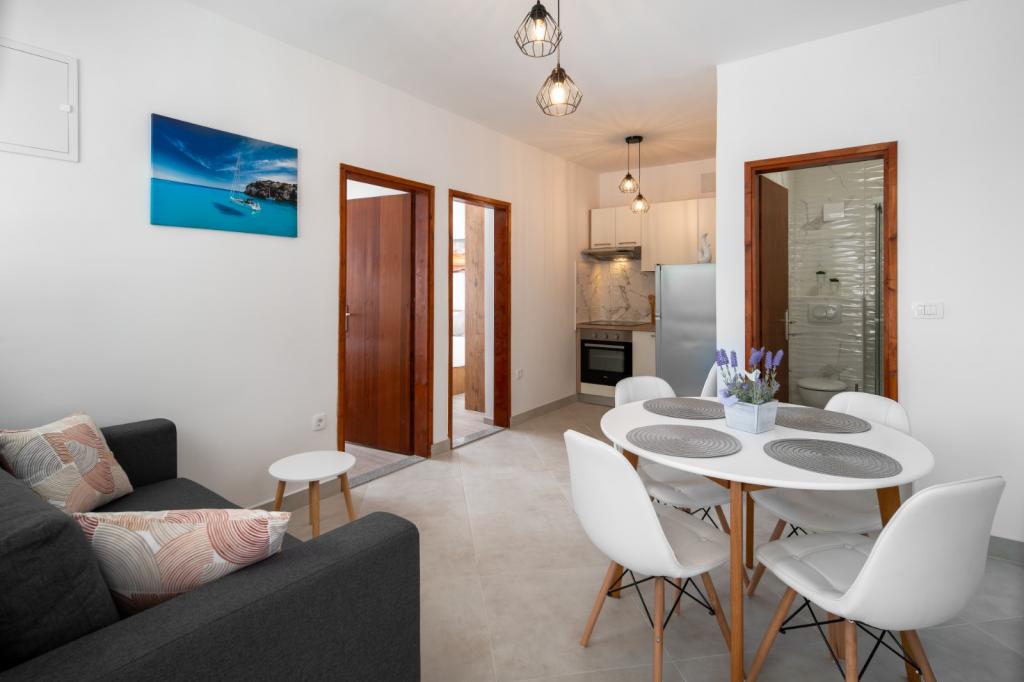 Sve pohvale za domaćine, jako ljubazni Apartman je prekrasan sve je novo uredno i udobno Plaža je preko puta, nema gužve extra tko voli mir Nama je bilo prelijepo i preporučujem svima s djecom tko voli manja i mirnija mjesta. Također smo bazen jako puno koristili, djeca su uživala, nema nekih pravila samo opušteno i uživancija