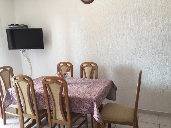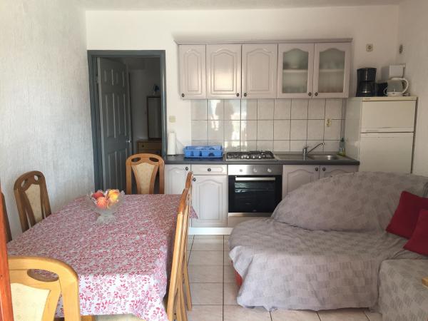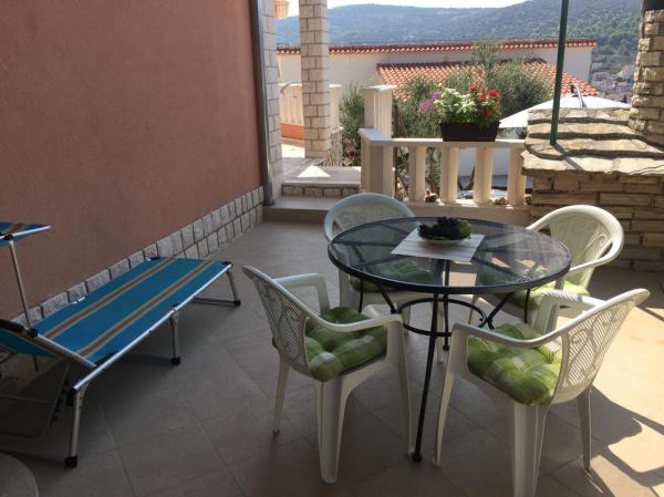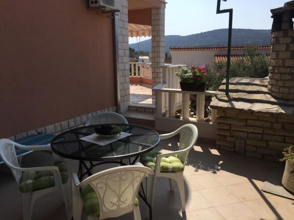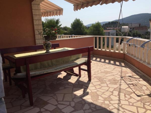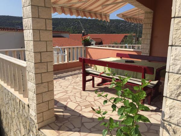 Kompletno i suvremeno opremljeni apartmani nalaze se u mirnom podrucju Marine. Objekt se nalazi 10 minuta hoda do plaže a 5 minuta do centra mjesta u kojem su posta,restorani i sve ostale vaznosti. Svaki apartman ima veliku terasu koja je idealna za vecernji odmor. Kuca je povoljna za obitelji s djecom i prijatelje koji zele mir. Nedaleko od mjesta nalaze se poznati disco klubovi kao sto su F1 u Trogiru i Aurora u Primostenu sto je jako dobro za mlade koji zele zabavu.