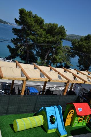 Objekt SAMSON rooms nalazi se na samo 10 metara udaljenosti od šljunčane plaže. U objektu se nalazi 6 dvokrevetnih soba od kojih 4 gledaju na more, a dvije na vrt. Sve sobe su renovirane i kompletno opremljene. U objektu se nalazi restoran u kojemu se poslužuje doručak za goste te a la carte jela. U dijelu objekta nalazi se teretana i dječje igralište. Objekt je udaljen oko 700 metara od centra mjesta Marina i lučice, te oko 10 kilometara od grada Trogira i 15 kilometara od aerodroma Split.