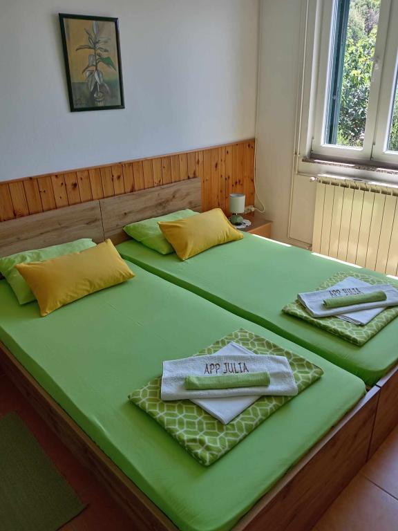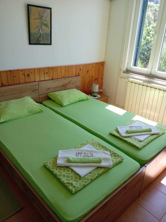 Idilični smještaj na otoku Cresu. Kuća Julia, smještena u mirnom mjestu Martinšćica, nudi idiličan odmor u neposrednoj blizini prekrasne plaže. Martinšćica, kao slikovito ribarsko selo na otoku Cresu, pruža miran odmor daleko od užurbane svakodnevice i stresa. Na raspolaganju su vam : studio apartman za 4 osobe, studio apartman za tri osobe, dva studio apartmana za dvije osobe te dvije sobe (Julia2 i Julia4) s mogućnošću korištenja kuhinje. Svi smještajni kapaciteti omogućuju udoban i opuštajući boravak. Kućni ljubimci su dobrodošli, a gostima je osiguran i pristup internetu te parkiralište. Također, vanjski roštilj dostupan je za uživanje u pripremi ukusnih obroka pod otvorenim nebom.