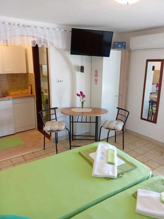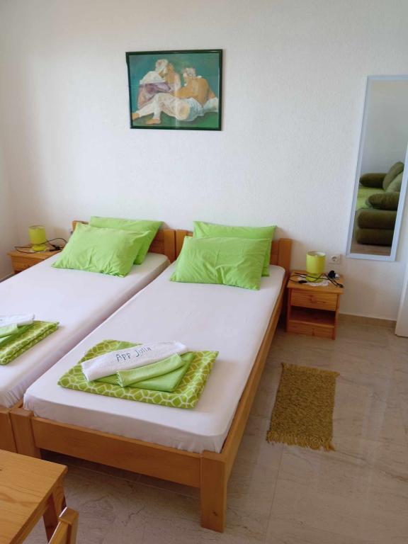 Pročitaj više Smještajne jediniceMogućnost plaćanja karticom. Boravišna pristojba je uključena u cijenu. Boravak kućnih ljubimaca dodatno se naplaćuje 10 Eura po danu. Dodatak za boravak od dva i tri noćenja je 30%. Dodatak za boravak od jedne noći je 50% U pojedinim sobama postoji mogućnost dodatnih ležajeva uz nadoplatu, ovisno o vašim potrebama. Sobe Julia 2 i Julia 4 imaju mogućnost korištenja zajedničke kuhinje. Obavezan depozit od 200 eura. Dolazak iza 16 sati. Odlazak do 10 sati.