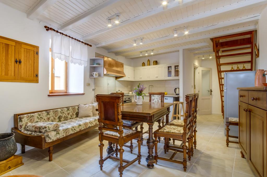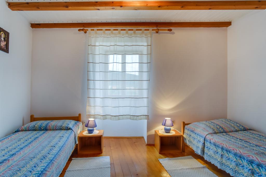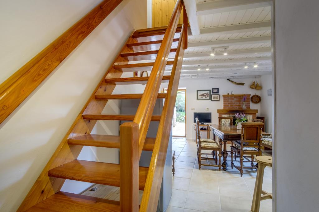 Izvorna otočka kamena kuća **** (86 m2), obnovljena, namještena ručno rađenim namještajem, idealna za obiteljski odmor ali i za romantični odmor u dvoje. Kuća se sastoji od 3 etaže: Prizemlje (kompletno opremljena kuhinja s perilicom za suđe, velikim hladnjakom sa zamrzivačem, aparatom za Nespresso i filter kavu, pećnicom i podnim grijanjem, kupaonica s perilicom rublja i podnim grijanjem te prostor za dnevni boravak sa SMART SAT TV), prvi kat (2 spavaće sobe sobe, jedna s bračnim a druga s dva odvojena kreveta) i mansarda - krovna terasa s predivnim pogledom na more, dvokrevetna soba s klima uređajem i kupaonica. Sve sobe imaju pogled na more. Gostima je na raspolaganju vrt s roštiljem i maslinik s ležaljkama s pogledom na more. Privatni parking za 2 automobila udaljen je 50 m od kuće i nalazi se uz cestu. Vrlo lijepa šljunčana plaža udaljena je samo 80 m od kuće. Internet WiFi je gostima dostupan u svim prostorijama, uključujući krovnu terasu, besplatno.