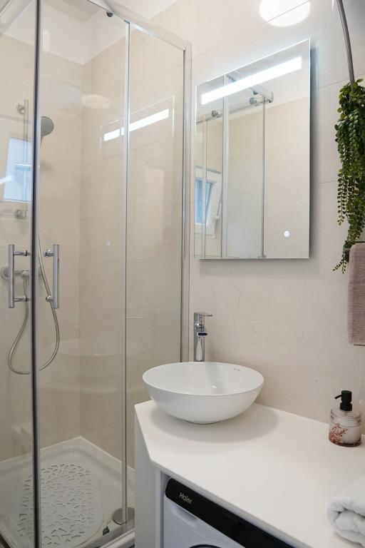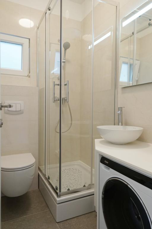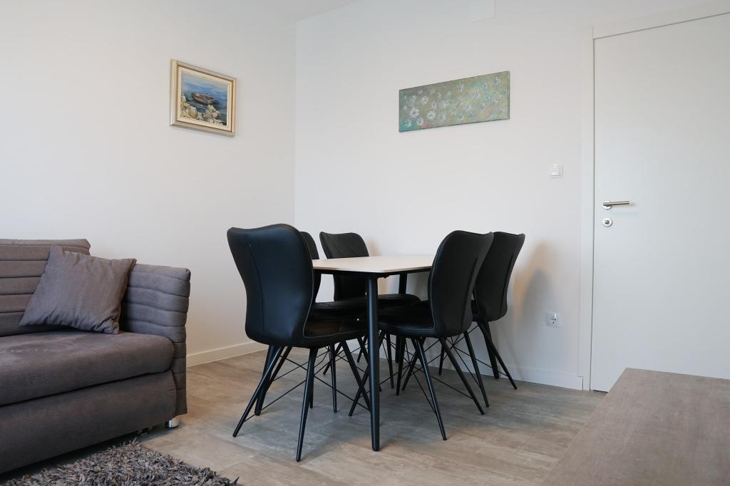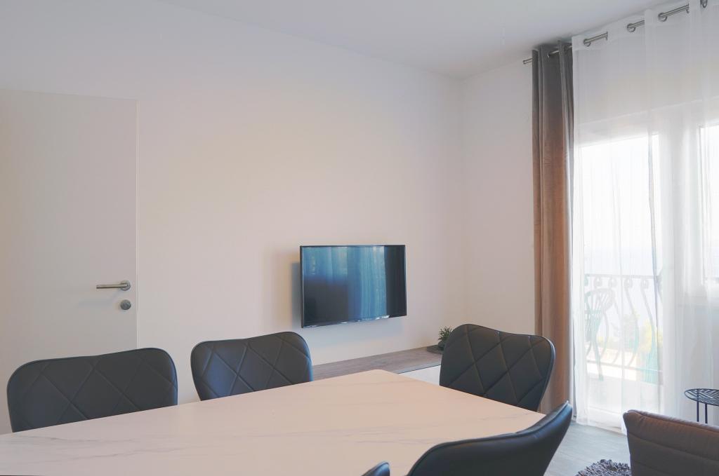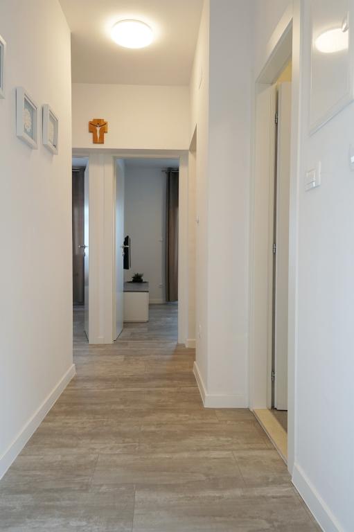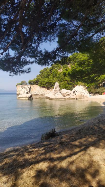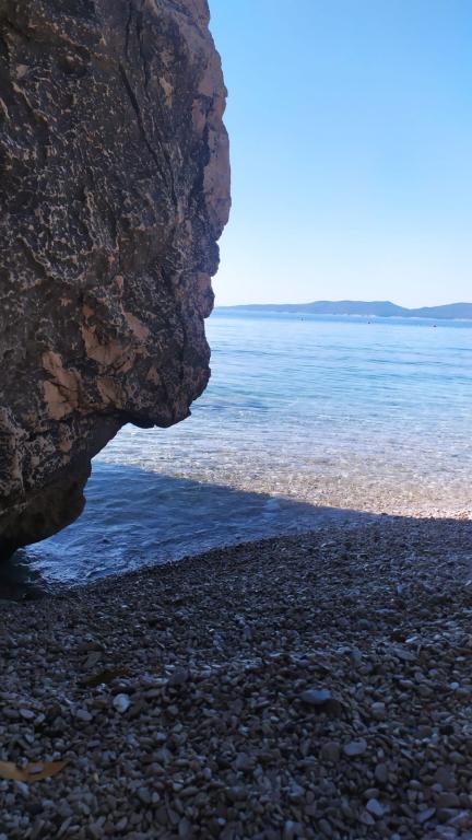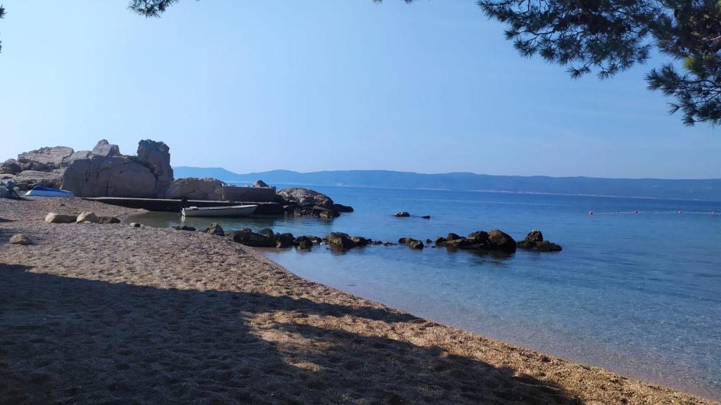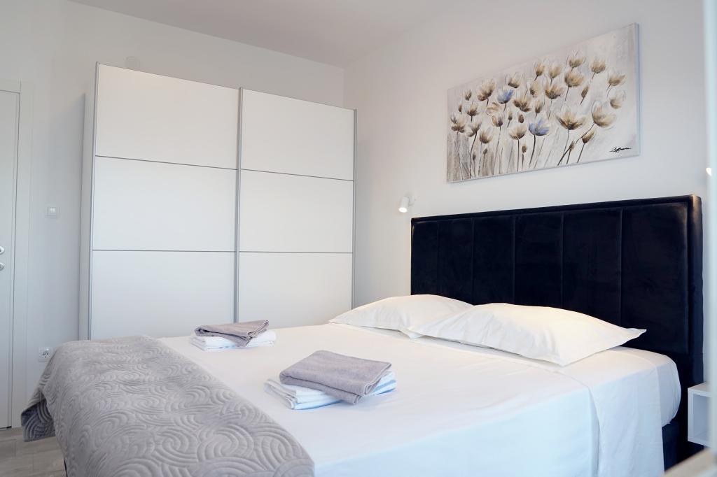 Novouređen stan na drugom katu kuće, smještene u mirnom mjestu Marušići. Apartman je moderno opremljen i pruža potpuni mir i udobnost za dušu i tijelo. Sastoji se od 2 spavaće sobe (od kojih je jedna s bračnim krevetom, a druga s dva kreveta za po jednu osobu), kuhinje, dnevnog boravka, kupaonice, hodnika, te balkona. 45m2 odnosi se samo na unutarnji prostor. Ima prostrani balkon s prekrasnim pogledom i veliko dvorište odmah iza kuće. Bilo da volite sjediti u hladovini masline ili sjediti na balkonu s pogledom na otoke i Sredozemno more, imate obje mogućnosti. Najbliža plaža udaljena je 5 minuta hoda. Druga plaža udaljena je 10 minuta hoda, obje su prekrasne šljunčane plaže s lijepim ulazom u more. Parking se nalazi odmah iznad kuće i stražnjeg dvorišta.