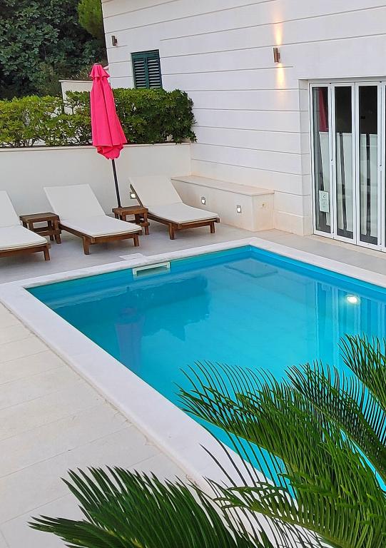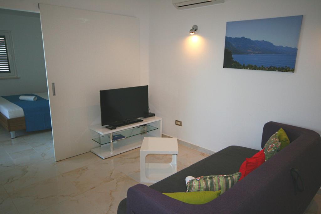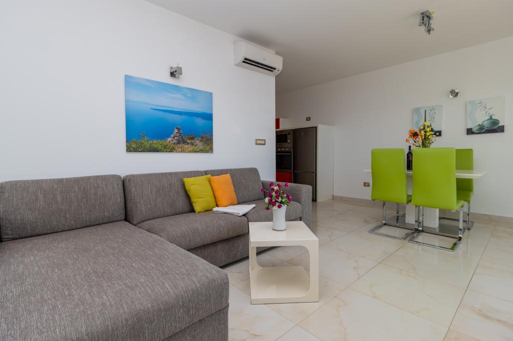 Novoizgradjena villa nalazi se na iznad prekrasne plaze. Svaki gost ima dvije lezaljke na raspolaganju za vrijeme cijelog boravka, tus na plazi i grill mjesto. Kao dodatne sadrzaje nudimo Fitness- dvoranu, Kajake, Mountain bike, izleti sa nasim brodom, gratis shuttle do poznatih restorana itd. Vrlo dobra povezanost s obližnjim gradovima i mjestima: - 1,0 km do Mimice (supermarketa, pošte, kafić, barovima i restoranima, ...) - 8km do Brela - svih turističkih sadržaja (sport, restorani, šetnice, itd) - 10 km do Omiša - poznati Stari Grad, ribarnica (svježe svaki dan), ljetni festival (Klapa), Sea Pirati festival, rafting, iznajmljivanje čamaca, izleti i sl - 20 km do Makarske - 36 km do Splita