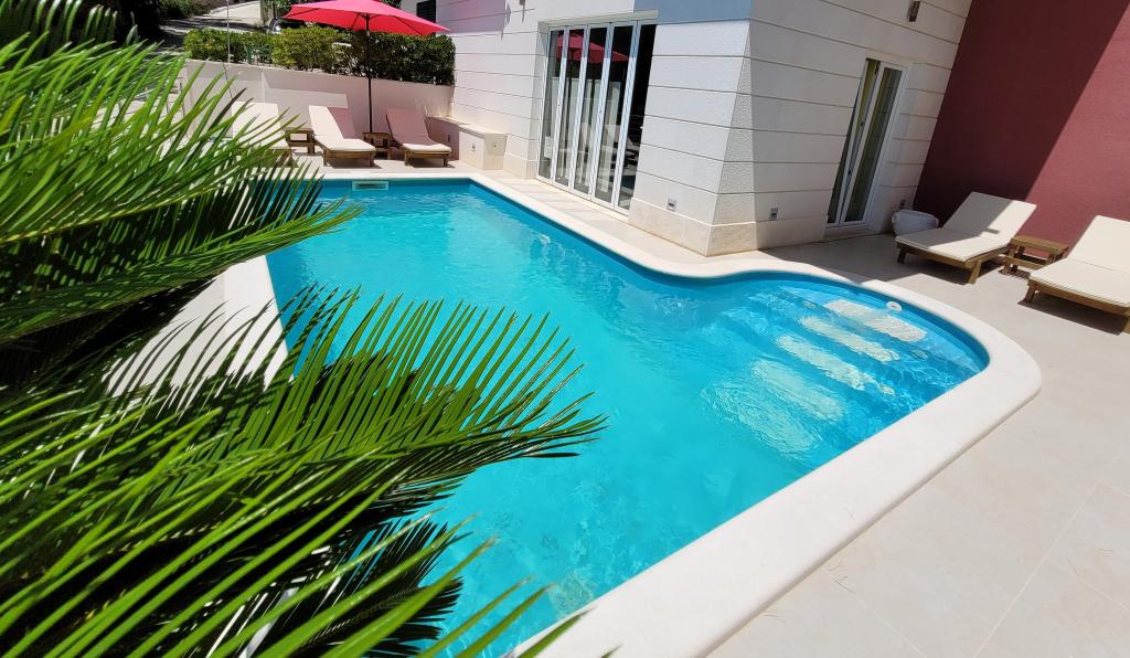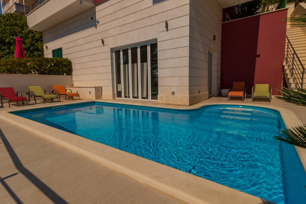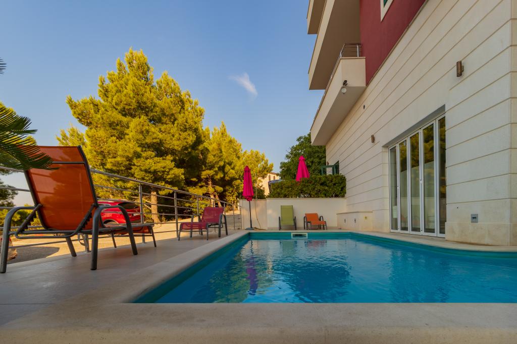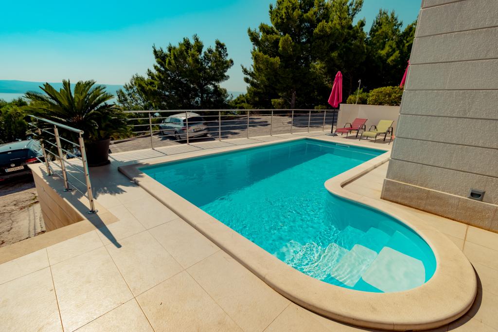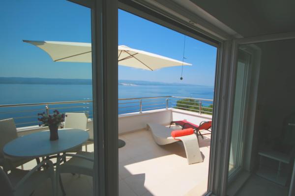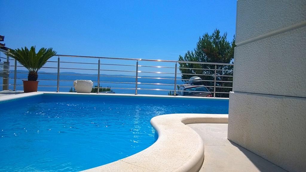 Villasanta De Luxe je novoizgradjena luksuzna vila sa vanjskim bazenom sa masazom, nalazi se u prvom redu do mora iznad plaze, i sastoji sa sest vrhunsko i kompletno opremljenih apartmana. Apartman ima veliku terasu sa prekrasnim panoramskim pogledom na more i obliznje otoke. Svaki apartman ima slobodan WIFI Internet, sve sobe su klimatizirane, i kuhinje su kompletno opremljene. Svaki stan ima parkirno mjesto. Uz kucu se nalazi rostilj i mjesto za zajednicko druzenje, prostrani vrt i lijepi pogled na more. Odlicna prometna povezanost (Aerodrom Spli 50 km, Split 35km, Omis 10 km, Makarska 20 km). Nudimo i prijevoz sa aerdodroma.
