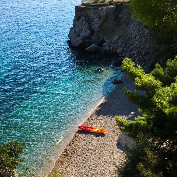 Plaže su prekrasne kao što vidite na slikama, more je kristalno čisto, obala je poludivlja što znači mnoštvo malih špilja i kamenja pogodnih za ribolov ili morske radosti. Do glavne plaže ima 5 min hoda stepenicama i manjim dijelom šljunčanim putem. Moguće je i da tijekom odmora dobijete na raspolaganje kayak(2+1) te tako dobijete totalno drugu dimenziju Omiško/Makarske rivijere. Za svakoga ima ponešto, onaj tko želi aktivni odmor može uživati u svim blagodatima ovog kraja(brdsko bicikliranje, planinarenje, rafting na Cetini, vaterpolo...). Ako ste ipak tip za upijanje sunčevih zraka i miris mora nećete se nimalo razočarati u "Marušićki" ambijent. Zainteresirani javite se na Whatsapp ili ovdje na web, a možete pogledati našu Facebook stranicu(facebook.com/villaseaside).