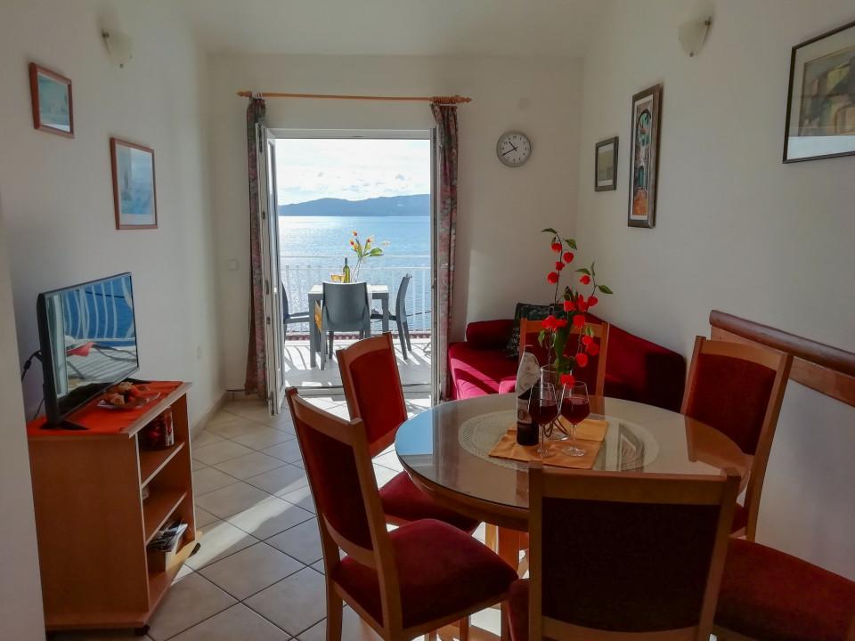Fantastičan apartman za odmor s brojnim prednostima: Apartman je prostran, moderan i estetski vrlo lijepo namješten, naravno i s W-LAN-om i klima uređajem. S balkona imate fantastičan pogled na more i planine - kombinacija koju samo Hrvatska može ponuditi! Apartman se nalazi u malom mjestu Marušići u blizini "gusarskog grada" Omiša, na vrlo mirnoj lokaciji, au isto vrijeme lako dostupan s obalne ceste. Idilična plaža, koju uglavnom posjećuju domaći ljudi, udaljena je svega nekoliko minuta. Uz obalu možete veslati kajakom iznajmljivača. Jadranka i Doni izuzetno ljubazni i ljubazni iznajmljivači sa savjetima i akcijama!