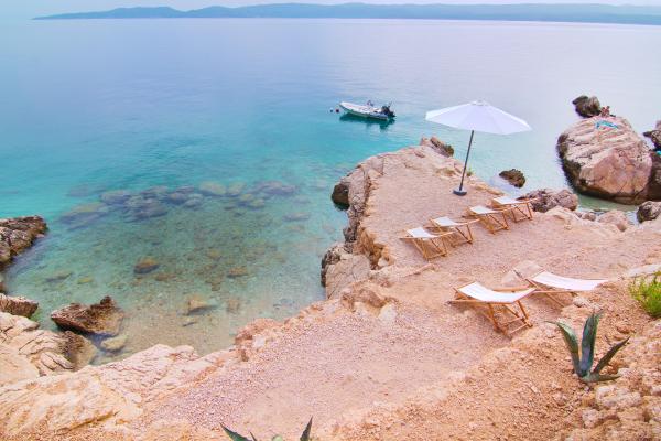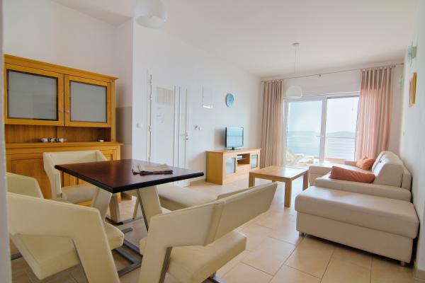 Novo uređeni apartmani prvi red do mora, udaljeni 30m od mora i plaze. Sa unutarnjim bazenom i rustikalno uređenim parkom.