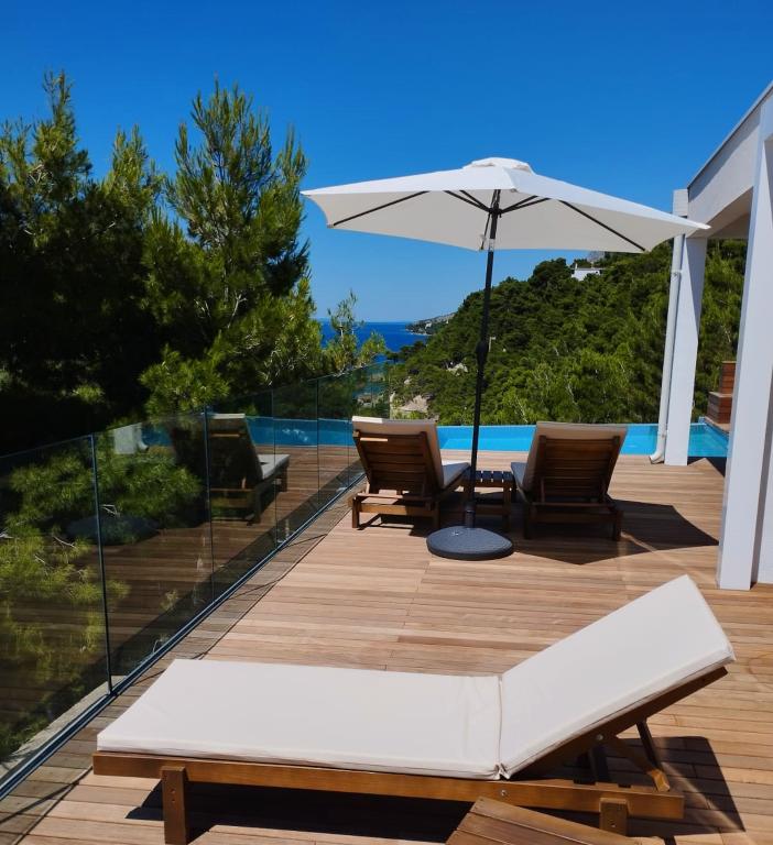 Turistička pristojba nije uključena u cijenu.Novoizgradjena villa nalazi se na iznad prekrasne plaze. Svaki gost ima dvije lezaljke na raspolaganju za vrijeme cijelog boravka, tus na plazi i grill mjesto. Kao dodatne sadrzaje nudimo Fitness- dvoranu, Kajake, Mountain bike, izleti sa nasim brodom, gratis shuttle do poznatih restorana itd.