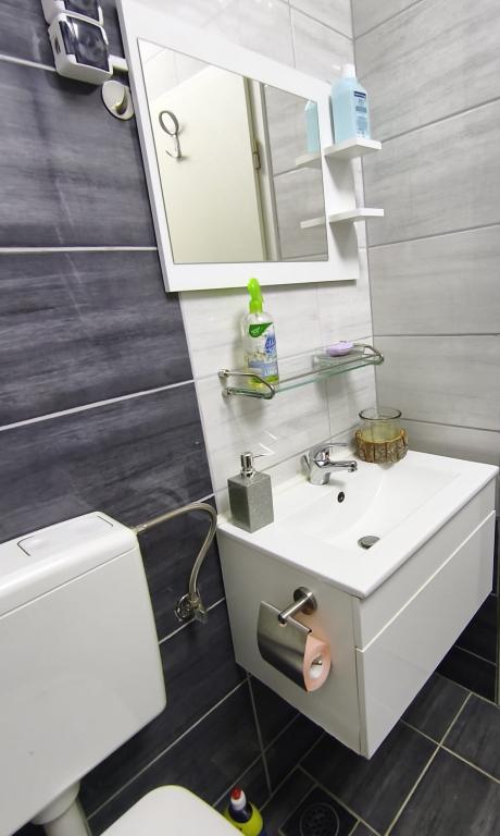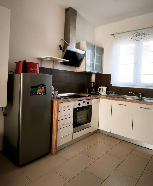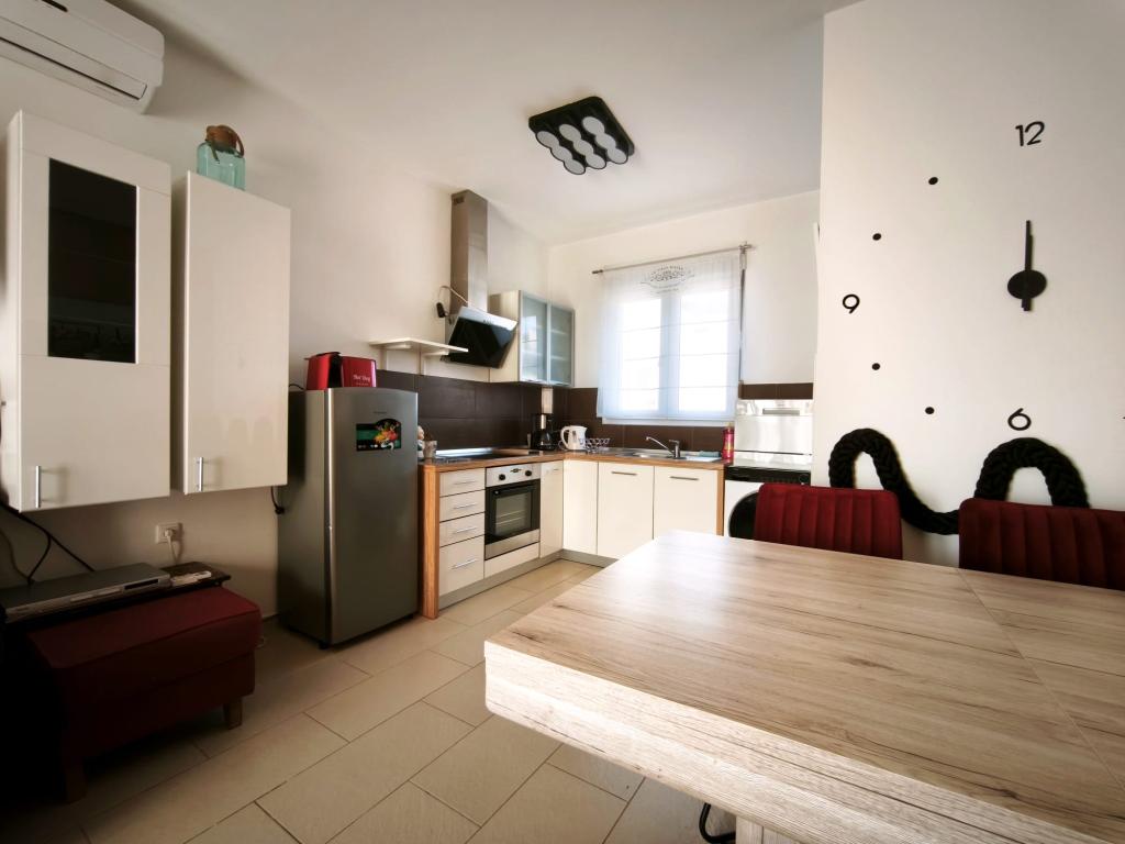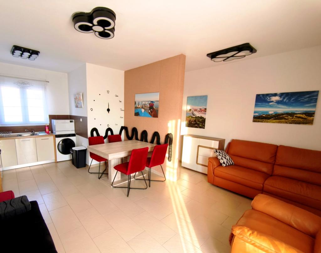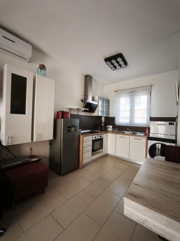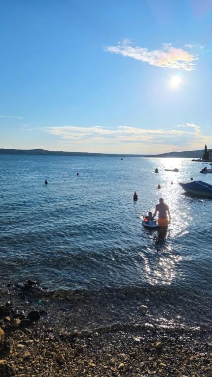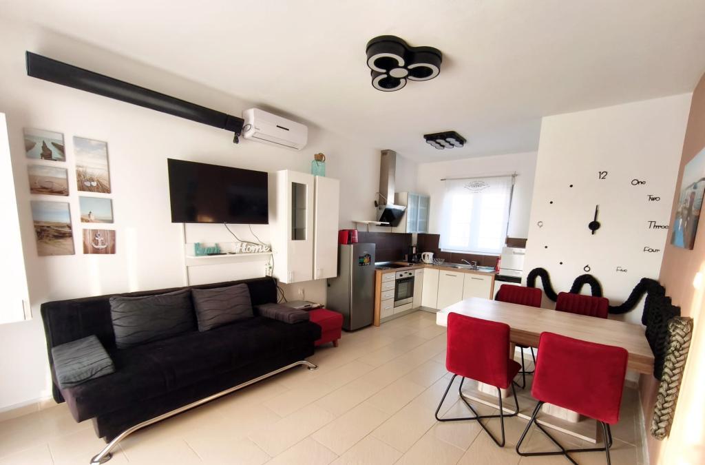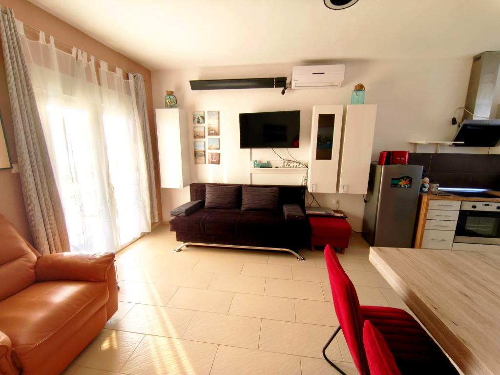 Kompletno uređen apartmanu koji se nalazi na prizemlju. Sastoji se od jedne spavaće sobe sa bračnim krevetom te kuhinje sa blagovaonice te jednim wc-om i dnevni boravak u kome se nalazi dva kauča od kojih se jedan može razvuci za pomoćni ležaj. Također postoji mogućnost boravka kućnih ljubimaca uz naknadu te posjedujemo vez/bovu koji naši gosti mogu koristititi za privezati svoj manji brod