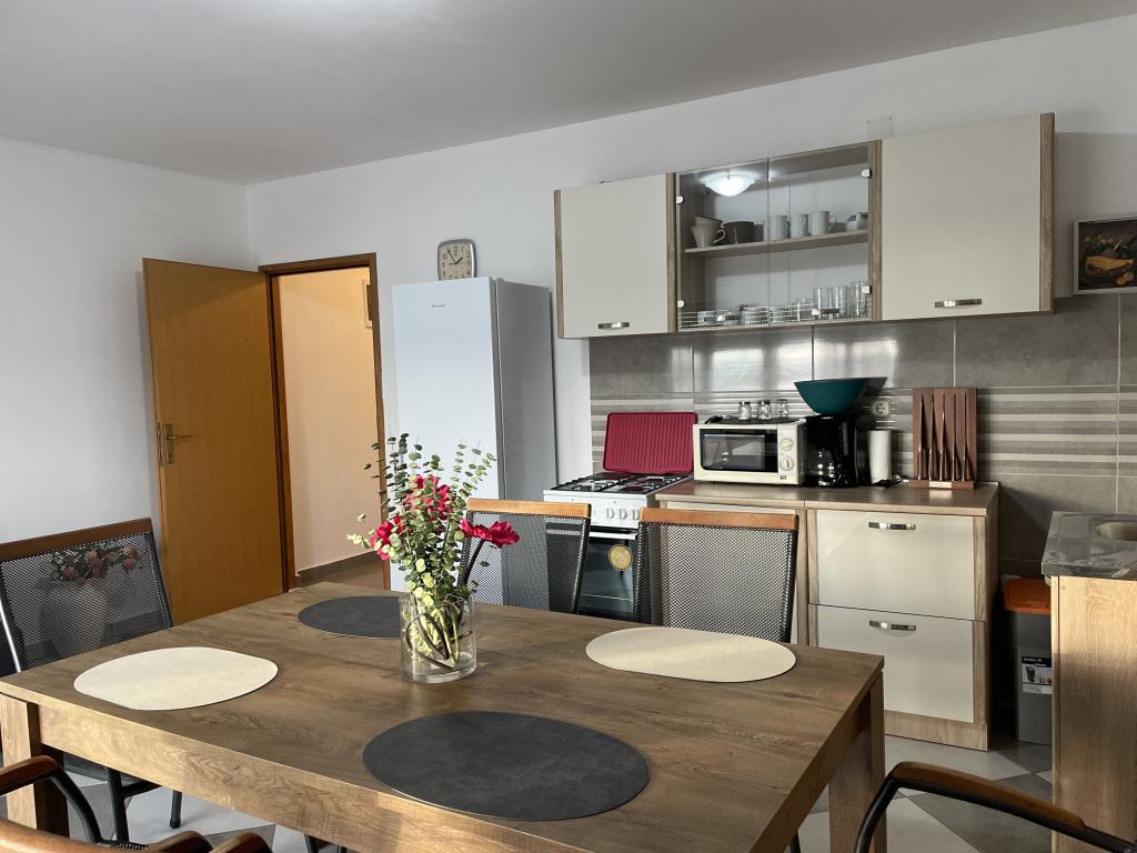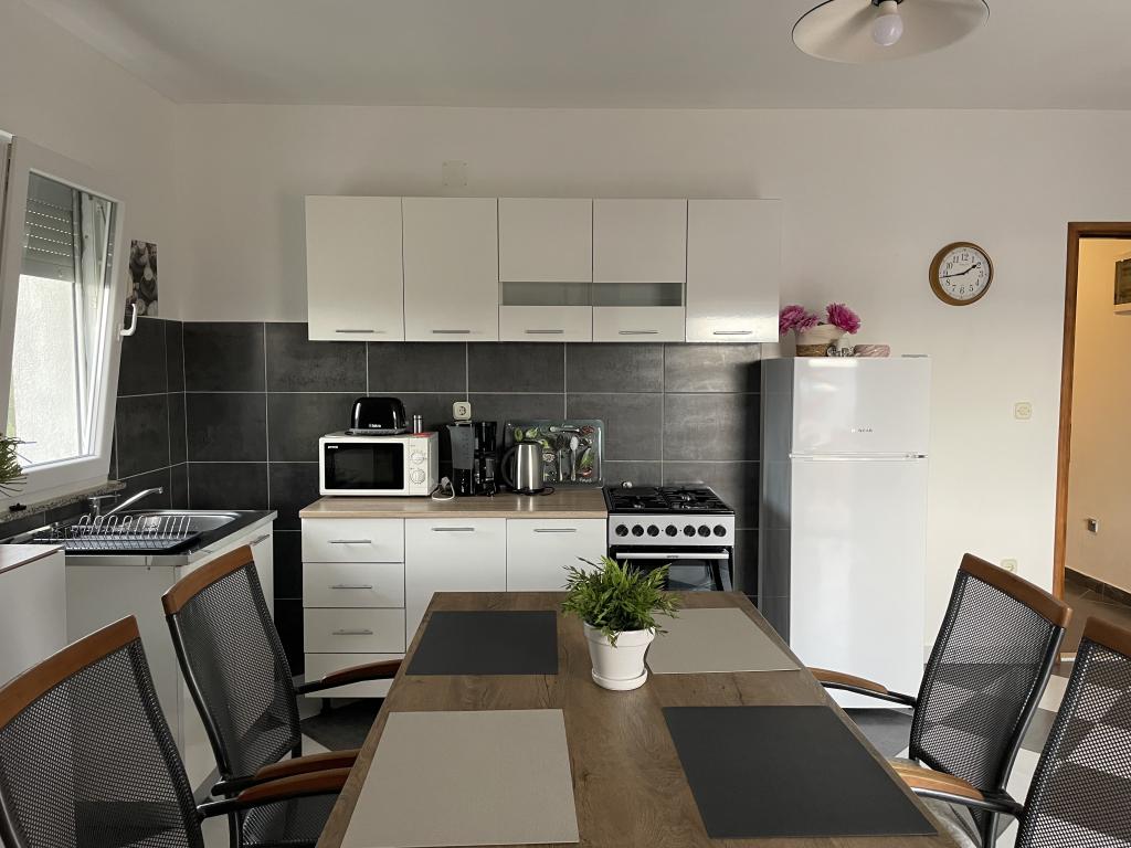 Kuća za odmor se sastoji od 4 (četiri) apartmana, svaki površine 60 m2 plus pripadajuće terase (apartman 1 - terasa 31 m², apartman 2 - terasa 28 m², apartman 3 - dvije terase 20 m², apartman 4 - dvije terase -20 m²). Apartmani su u centru Maslenice na parceli površine 1272 m2, udaljeni od plaže 5 minuta hoda. Iz apartmana se pruža pogled na more. Vlasnici ne žive u objektu i gosti sami borave u kompletnom objektu. Svaki apartman se sastoji se od dvije sobe, kupaone, kuhinjsko-dnevnog boravka i hodnika. Terase imaju zaštitu od sunca (suncobrani). Posteljina i ručnici se mjenjaju svakih 7 (sedam) dana za boravak duži od 7 (sedam) dana. Kuhinje su opremljene sa svom potrebitom opremom i priborom. Apartmani su opremljeni sa glačalom, daskom za peglanje rublja, sušilicom rublja, sušilom za kosu, tosterom, aparatom za kavu i kuhalom za vodu. Korištenje interneta, klime, satelitske TV, parkinga, sušila za kosu i perilice rublja se ne naplaćuje. Kuća se nalazi u mirnom predjelu Maslenice.