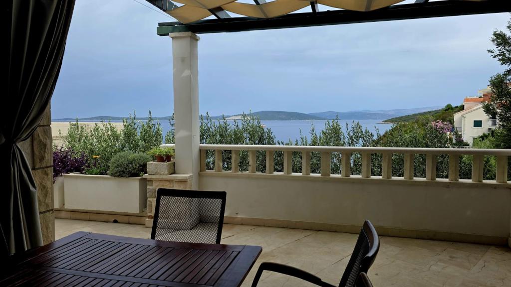Kuća se nalazi prvi red do mora, u malom mjestu Maslinica. Sastoji se od četiri spavaće sobe, dvije kupaonice, jedne velike potpuno opremljene kuhinje (uključujući perilicu suđa) i jedne male kuhinje, prostranog i udobnog dnevnog boravaka s velikim LED TV, kaminom i dodatnim kaučem na razvlačenje, velike terase s prekrasnim pogledom na more i zalazak sunca. Sve to okruženo je vrtom s mediteranskim stablima i biljkama. Većina kuće je nedavno obnovljena, tako da možete očekivati potpuno nove madrace s memory pjenom.