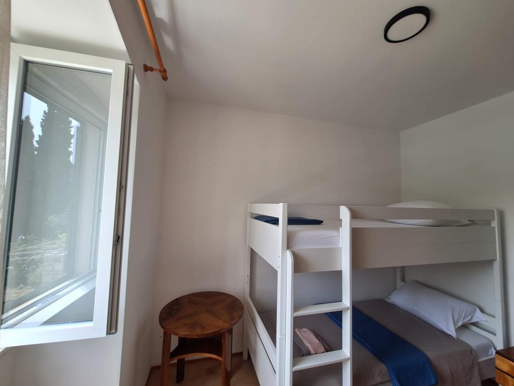 Apartman se nalazi u kući smještenoj u prvom redu uz more, s terasom koja uključuje vanjski tuš i roštilj, odmah uz plažu koja je dostupna samo par stepenica niže. Novouređen je i potpuno opremljen za obitelj s dvoje djece. Ima dvije spavaće sobe – jednu s bračnim krevetom i drugu s krevetom na kat. Kuhinja i blagovaonica čine zajednički prostor. Moja preporuka vlasnici Eni: dodati mali dvosjed kako bi se prostor pretvorio u pravi dnevni boravak. Komarnici na svim prozorima su pravo rješenje za miran san, budući da u mjestu ima dosta komaraca. U blizini se nalazi mali dućan s osnovnim potrepštinama, pekara, kiosk (Tisak), nekoliko restorana, pizzerija, fast food i beach bar na plaži. Ena i njezin otac su izvanredni domaćini, koji će vam osigurati predivno ljetovanje na Šolti. Toplo preporučujem ovaj smještaj!