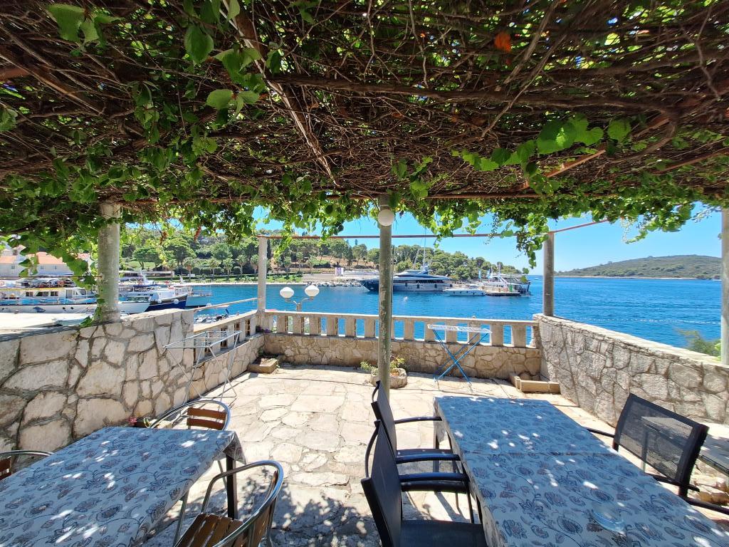 Ovi udobni apartmani smješteni su u tradicionalnoj kamenoj dalmatinskoj kući, prvi red do mora, što pruža nevjerojatan pogled na marinu i kristalno plavo more. Jedan apartman je studio u potkrovlju, dok je drugi dvosoban apartman u prizemlju, obe s vlastitom potpuno opremljenom kuhinjom i moderno uređenom kupaonicom. Bez obzira jeste li par koji traži intimnost ili obitelj koja želi prostrani smještaj, ovi apartmani nude udobnost i praktičnost. Velika zajednička vanjska terasa od 60m2 idealno je mjesto za opuštanje uz zalazak sunca ili večernje druženje s drugim gostima, uživajući u prekrasnom pogledu na more i marinu. Ovdje možete stvarno doživjeti čari dalmatinskog života uz udobnost moderne opreme i blizinu mora.
