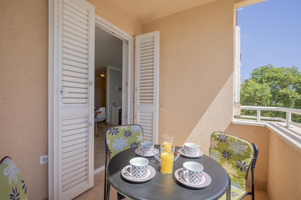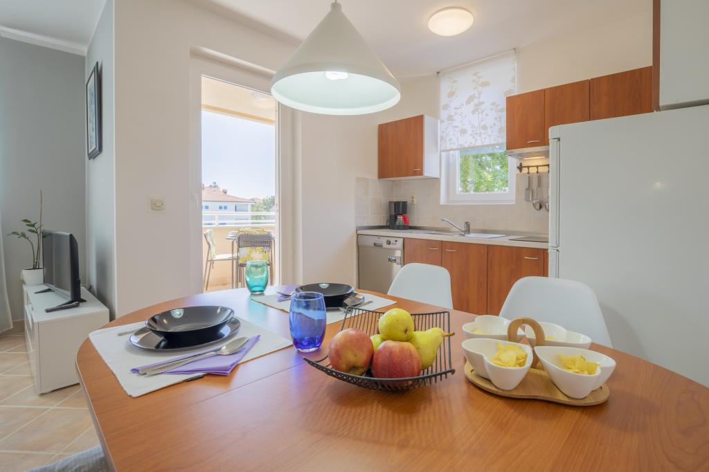 Apartman se nalazi nedaleko od svih sadržaja i glavne šetnice a od arheološkog lokaliteta Vižula i pješčane plaže Bijeca je udaljen samo 10 minuta hoda. Sastoji se od hodnika, dnevog boravka, kuhinje sa blagovaonom, kupaone, spavaće sobe, balkona te ima vlastito parkirno mjesto. Opremljen je perilicom posuđa i perilicom rublja, TV-om ravnog ekrana, mikrovalnom pećnicom, sušilom za kosu, glačalom, mini trezorom. U spavaćoj sobi se nalazi bračni krevet dimenzija 200x160 a u dnevnom boravku kutna garnitura sa ležajem na razvlačenje dimenzija 200x140. Dječji krevetić na upit. Smještaj se nalazi u u apartmanskoj zgradi u mirnom dijelu Medulina. Gostima nudi ugodan boravak i mogućnost bavljenja različitim aktivnostima u okolici.