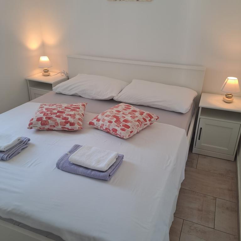 Apartmani Mila- Casa Bianca nalaze se u mirnom dijelu Medulina udaljeno svega 900m od centra, 500m od najbliže plaže Bijelica, nude smještaj sa besplatnim WiFi, roštilj na korišćenje i osiguran parking za auto. Objekat se nalazi 10 min. hoda do mora (hodanje stazom koja vodi kroz borovu šumu) do plaže Bijeca ili Belvedere, te centra Medulina pješice 5-10min ( ulice su jednosmjerne pa na karti izgleda dalje)...Medulin kao turističko mjesto osim lijepih plaža nudi i druge usluge za zabavu i druženje kao što su ranč sa konjima ( sve informacije na internetu), vožnja sportskim avionom i balonom, ronilčki klub, biciklističke staze po cijelom Medulinu i okolici, izleti brodom, lijepe šetnice uz vesela događanja i konzumaciju hrane i pića na otvorenom i bogatom ponudom istarskog pršuta, vina, maslinovog ulja i svega bogatstva što obiluje naša Istra...