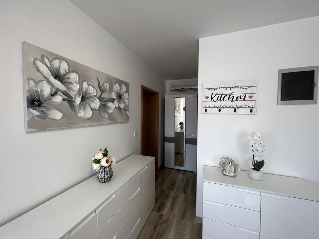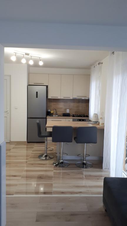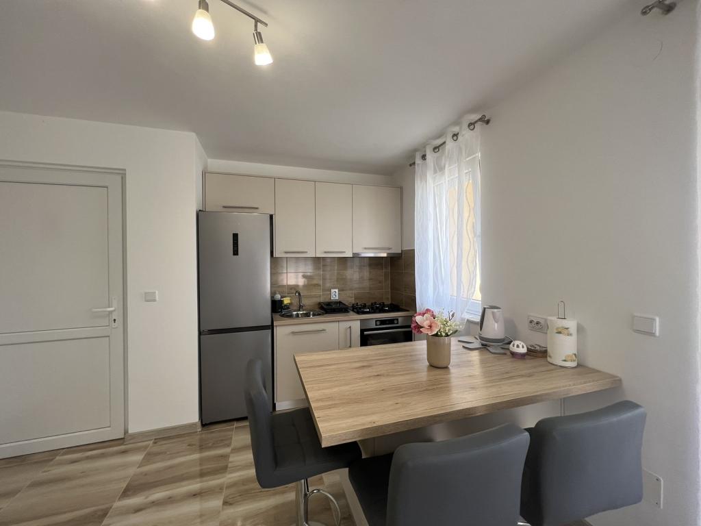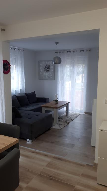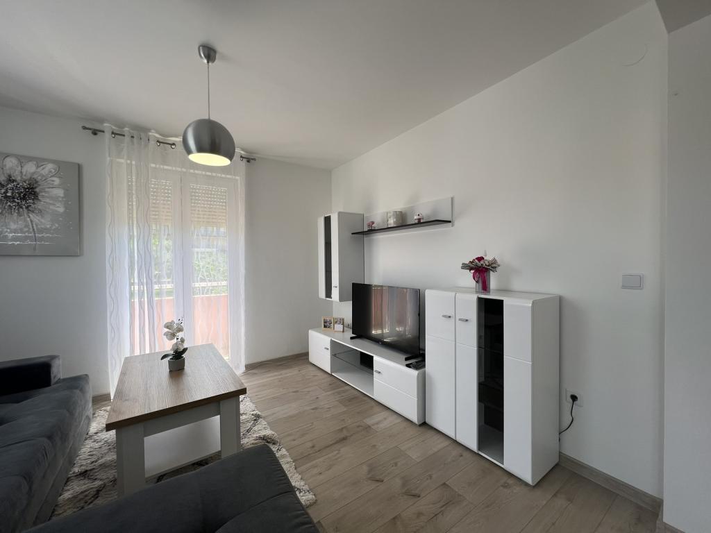 Apartman modernog dizajna,se nalazi na 1. katu stambene zgrade na mirnoj lokaciji.Kompletno adaptirani stan, 1 spavaca soba+kauc na razvlacenje, 2 balkona,komplet nova oprema,posteljnina,ručnici,klima,wi-fi,parking,hladnjak,perilica rublja
