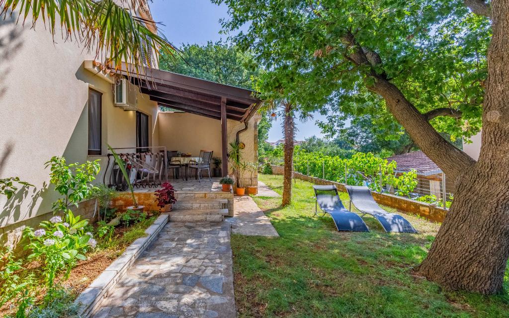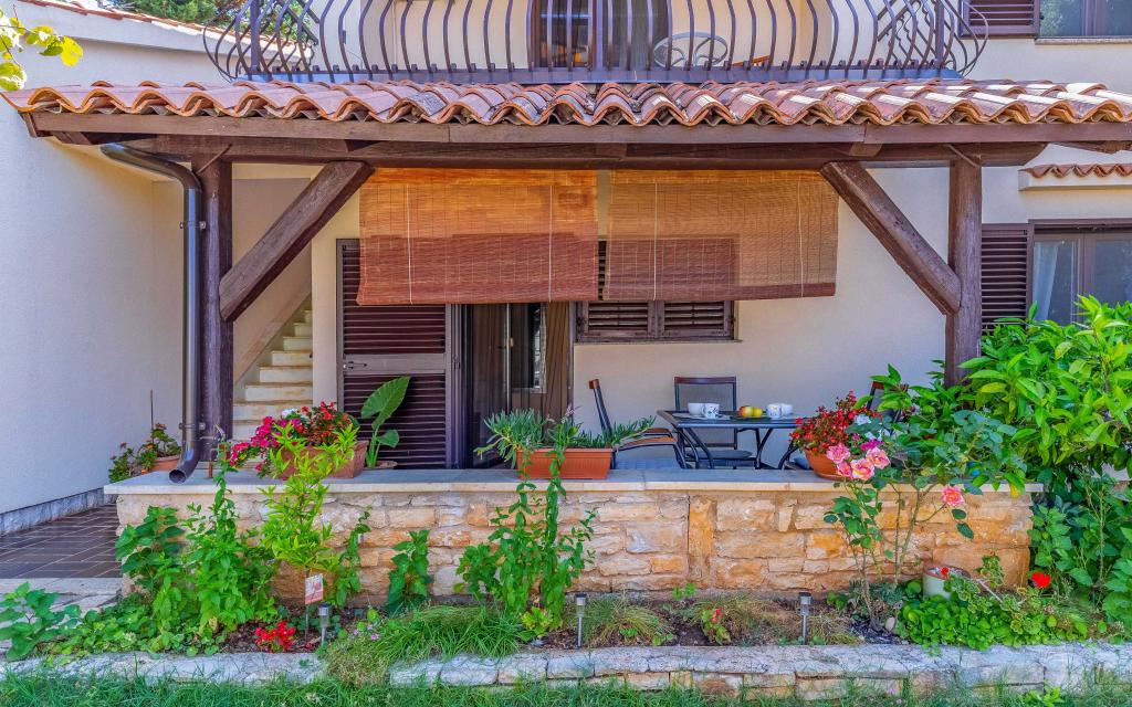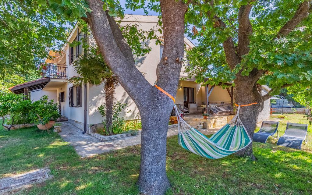 Apartmani se nalaze u obiteljskoj kući okruženoj zelenilom i vrtom. Udaljeni su 700m od plaže. Idealni su za obiteljski odmor.