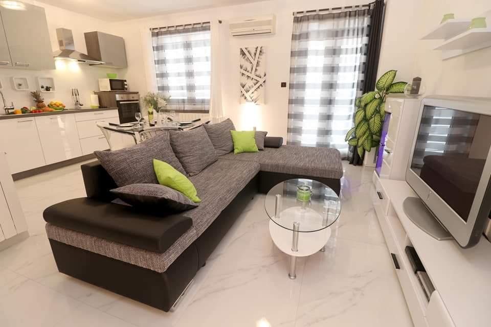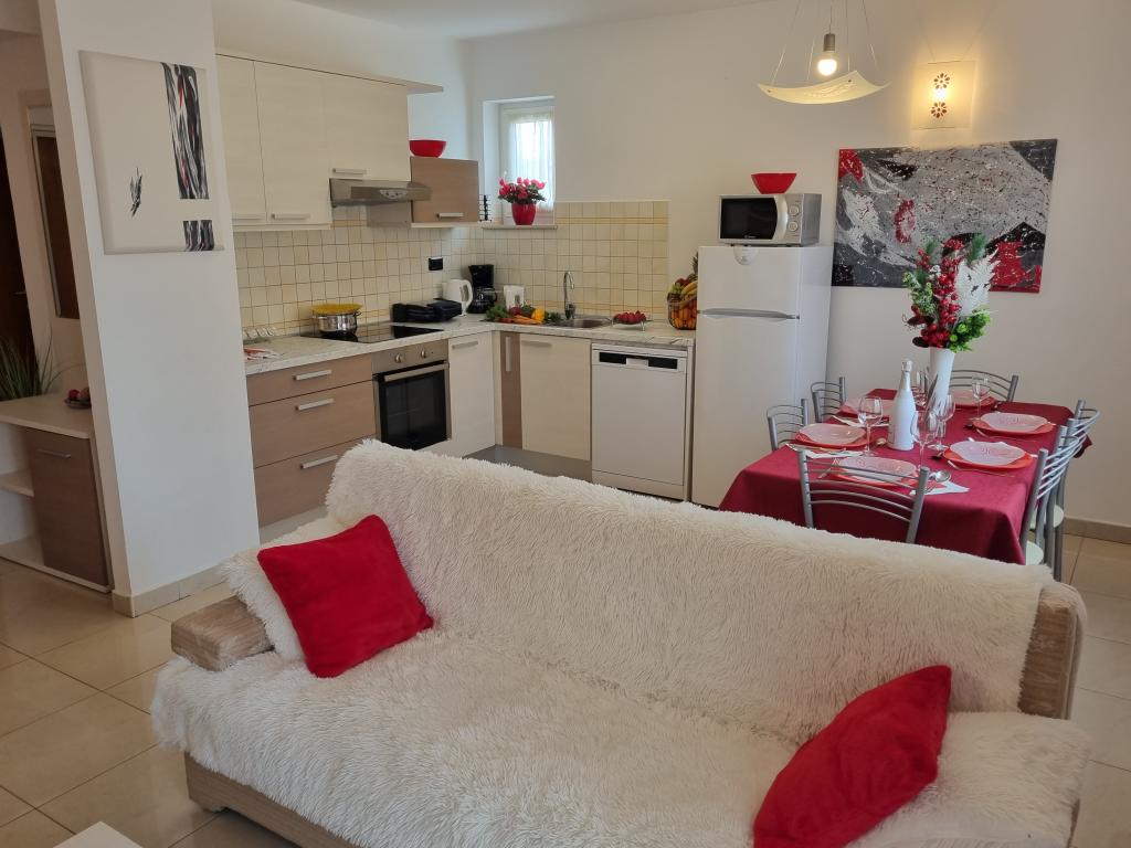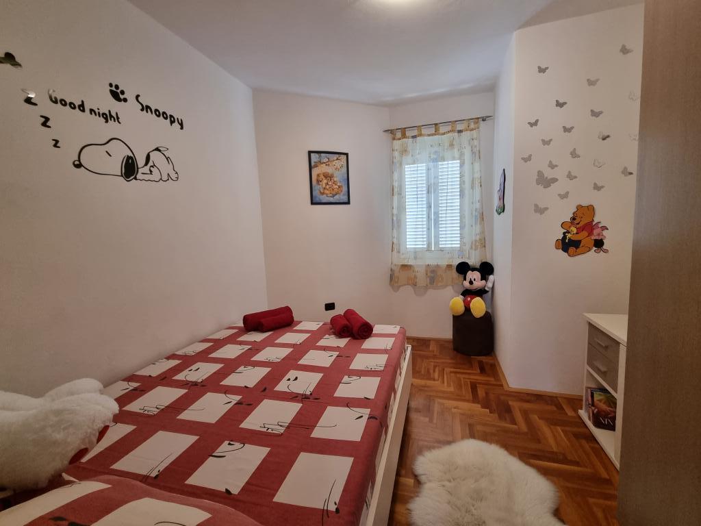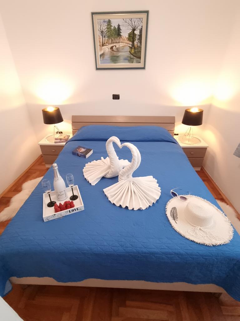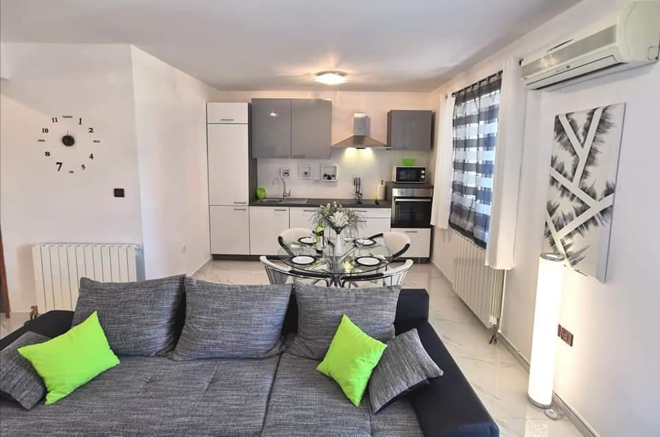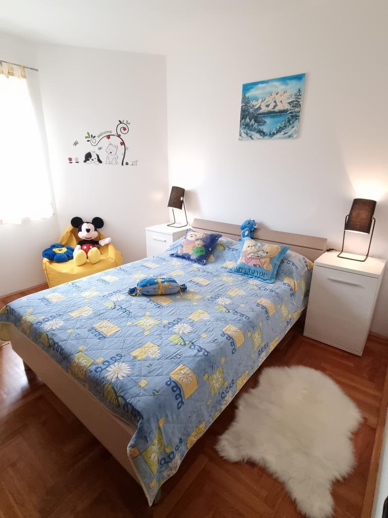Pročitaj više Smještajne jediniceSelf check in i self check out. Šifra ključa se šalje dan prije dolaska. Check in od 16:00 na dalje (ukoliko je dostupan apartman i ranije) Check out do 10:00 Plaćanje u gotovini ili na naš bankovni račun. Sve detalje šaljemo na mob (WhatsUp ili Viber ili SMS) ili e-mail po dogovoru. Posteljina i ručnici nalaze se u apartmanu. Prilikom rezervacije plaća se 20% iznosa rezervacije. Turistička taksa 2Eur/osobi/dan nije uključena u cijenu. Usluga završnog čišćenja 85Eur nije uključena u cijenu. Dječji krevetić na upit 20Eur. Visoka stolica za djecu dostupna na upit. Dječja kolica dostupna na upit.