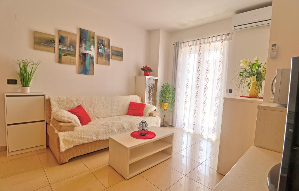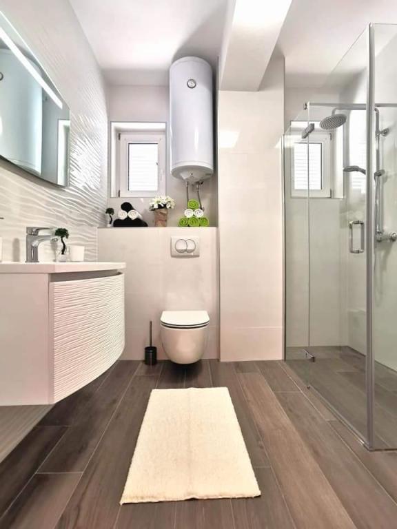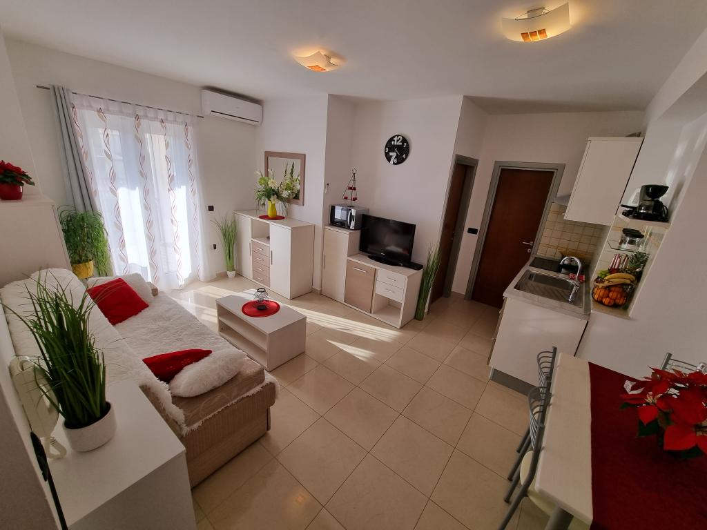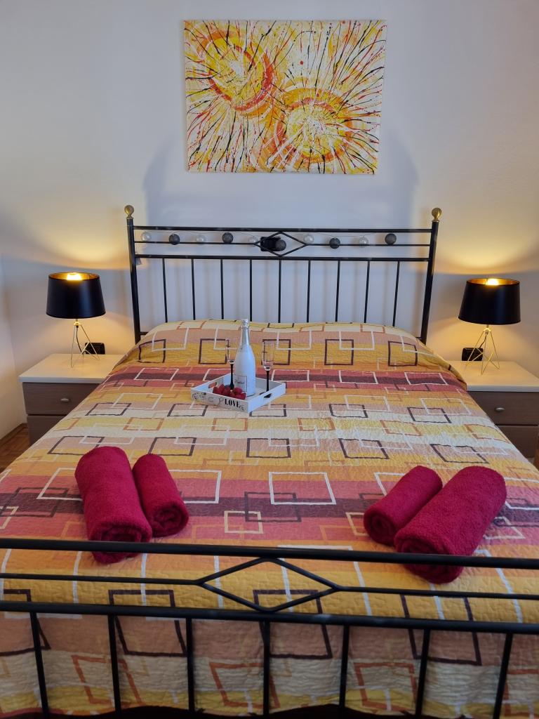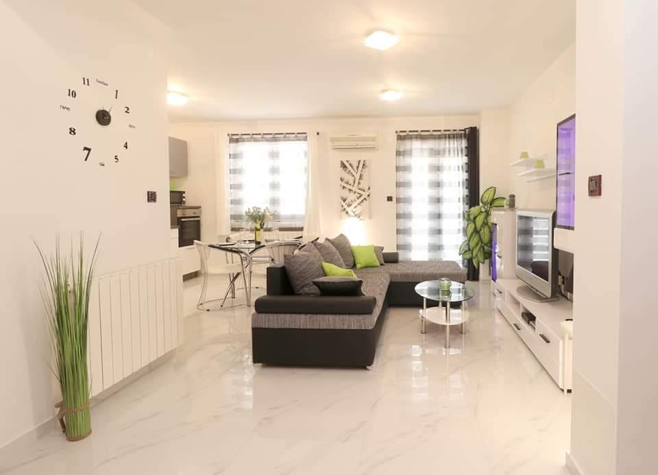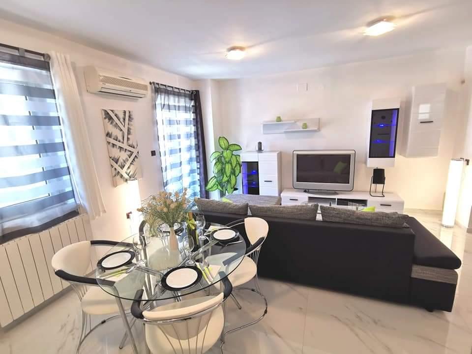 Pročitaj više Smještajne jediniceSelf check in i self check out. Šifra ključa se šalje dan prije dolaska. Check in od 16:00 na dalje (ukoliko je dostupan apartman i ranije) Check out do 10:00 Plaćanje u gotovini ili na naš bankovni račun. Sve detalje šaljemo na mob (WhatsUp ili Viber ili SMS) ili e-mail po dogovoru. Posteljina i ručnici nalaze se u apartmanu. Prilikom rezervacije plaća se 20% iznosa rezervacije. Turistička taksa 2Eur/osobi/dan nije uključena u cijenu. Usluga završnog čišćenja 85Eur nije uključena u cijenu. Dječji krevetić na upit 20Eur. Visoka stolica za djecu dostupna na upit. Dječja kolica dostupna na upit.