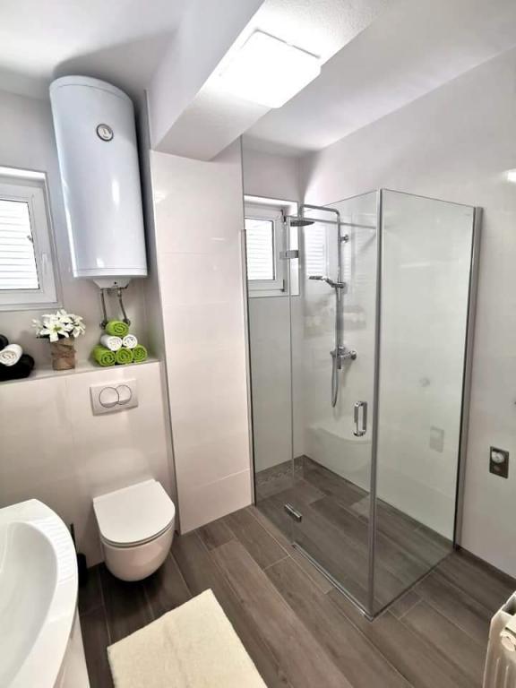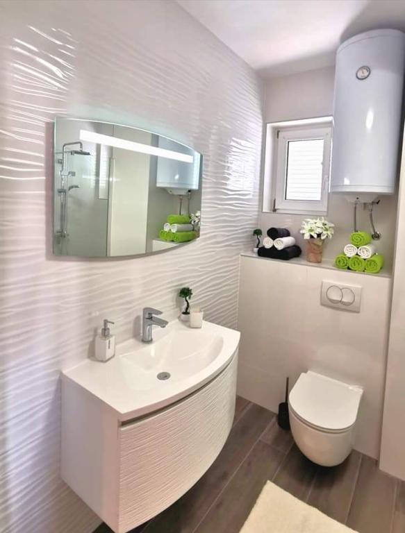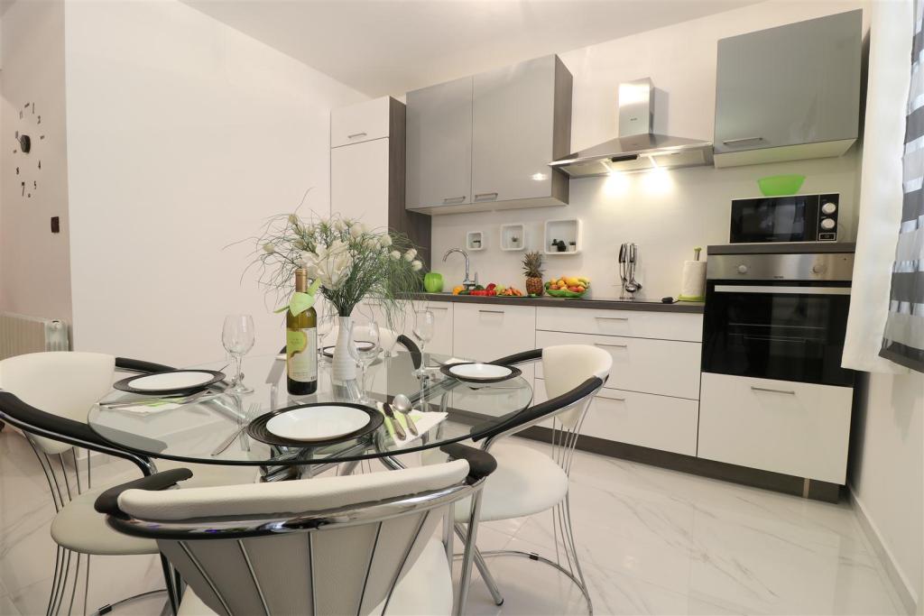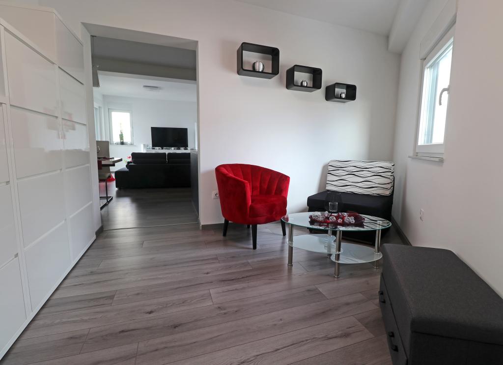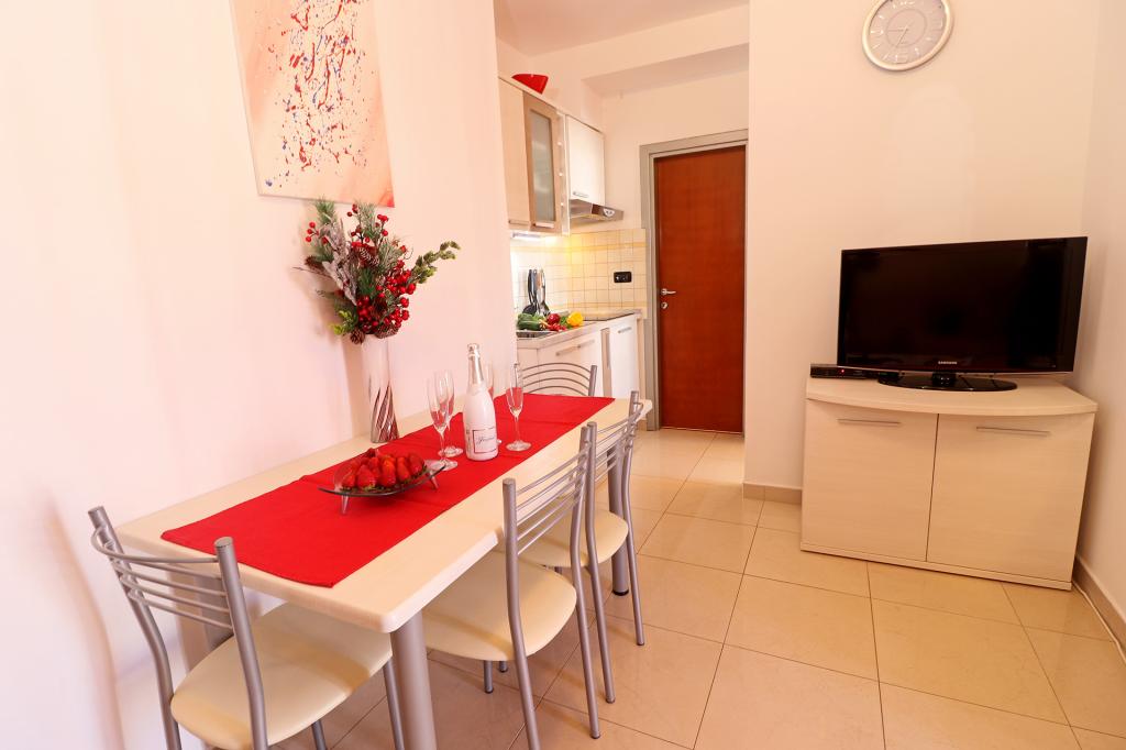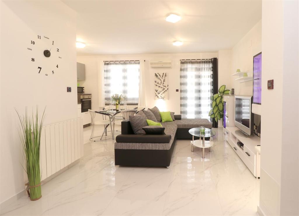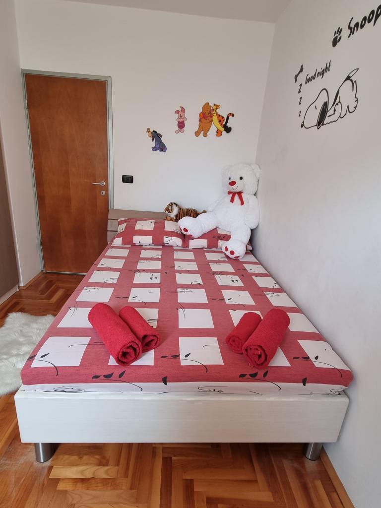 Pročitaj više Smještajne jediniceSelf check in i self check out. Šifra ključa se šalje dan prije dolaska. Check in od 16:00 na dalje (ukoliko je dostupan apartman i ranije) Check out do 10:00 Plaćanje u gotovini ili na naš bankovni račun. Sve detalje šaljemo na mob (WhatsUp ili Viber ili SMS) ili e-mail po dogovoru. Posteljina i ručnici nalaze se u apartmanu. Prilikom rezervacije plaća se 20% iznosa rezervacije. Turistička taksa 2Eur/osobi/dan nije uključena u cijenu. Usluga završnog čišćenja 85Eur nije uključena u cijenu. Dječji krevetić na upit 20Eur. Visoka stolica za djecu dostupna na upit. Dječja kolica dostupna na upit.
