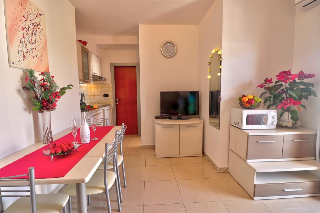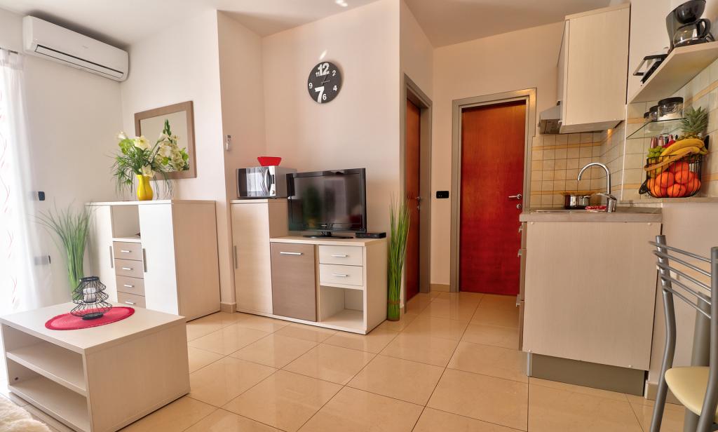 Ukupni smještajni kapacitet u cijelom objektu je za 26 osoba, pogodno za sportske timove i veće grupe ljudi. Potpuno opremljeni apartmani u mirnom dijelu Medulina, odmah iznad hotela i nogometnih terena. Do pješčane plaže udaljeni 10 minuta hoda, do centra 5 minuta. Uređeni vrt sa travnjakom idealan je za odmor i dječje igre. Parking je ispred zgrade za svaki apartman. Garaža je dostupna za bicikle, romobile, motocikle i sve velike stvari za more... Idealno za motocikliste, bicikliste ili surfere. Električnim vozilima omogućeno je punjenje u garaži.