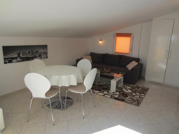 Apartmani Sara smješteni su u novom i mirnom predjelu Medulina - Pošesi, a udaljeni su samo 100 metara od plaže. Najbliža plaža je stjenovita, a u blizini se nalaze i ostale vrste plaža; šljunčana, betonska i pješčana. Šetnjom uz plažu dolazi se do centra Medulina u kojem se u večernjim satima nudi pregršt događanja za sve uzraste. Apartmani su moderno uređeni i četiri od pet apartmana imaju prekrasan pogled na more.