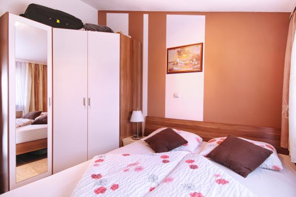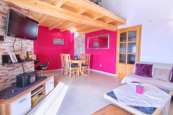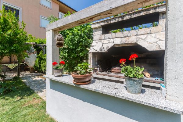 Turistička pristojba je uključena u cijenu.Stan se sastoji od dnevnog boravka, kuhinje, blagovaonice, kupaonice, 2 spavaće sobe i 2 terase. WLAN( u stanu i u vrtu) i klima su u cijeni. Vrt sa kaminom i privatnim parkingom. Mirna lokacija 10 minuta od raznih plaža. (pijesak, kamen, beton, šljunak)