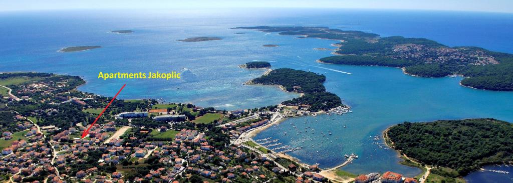 Kuća obitelji Jakoplić smještena je u Medulinu. U kuci se ukupno nalazi 7 apartmana. Tri apartmana se nalaze na prvom i tri na drugom katu. Sastoje se od spavaće sobe s bračnim krevetom, dnevne sobe s malom kuhinjom u kojoj se nalazi i kauč na razvlačenje (1, 50x2m). Svaki apartman ima kupaonicu i terasu, a kuhinja ima sve što je potrebno za kuhati, uključujući mikrovalnu pećnicu, toster, aparat za kavu i kuhalo za vodu. Jedan apartman za 4 osobe s dnevnim boravkom i dvije spavaće sobe se nalazi u prizemlju, apartmanu pripada malo dvorište sa vanjskim stolom i roštiljem. U svakom se nalazi LCD TV sa satelitskim programom te je osiguran bežični pristup internetu (Wi-Fi). Apartmani imaju klima uređaje te je za svaki osigurano parking mjesto, posteljina je uključena u cijenu kao i dva ručnika po osobi tjedno.Plaža je udaljena svega 500 metara.