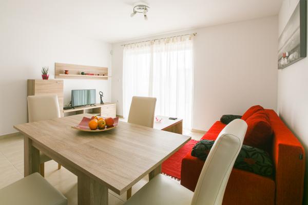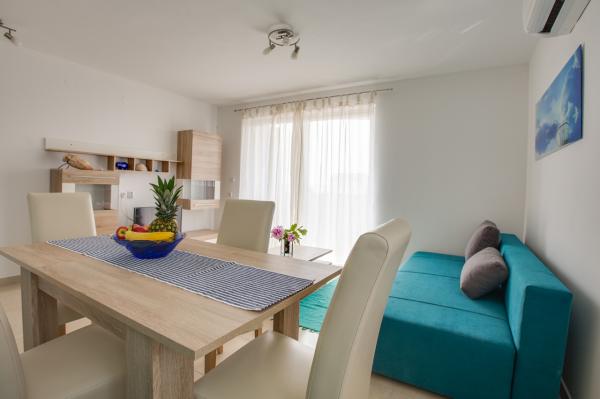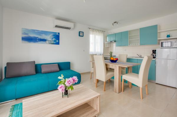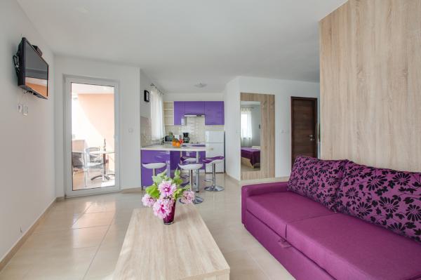 - Novi, moderni apartmani u novogradnji - Idealno mjesto prvi red do mora, plaža u blizini, lijep pogled na more Apartmani crveni i zeleni su u prizemlju Apartmani plavi i ljubicasti na prvom katu - Prva sezona iznajmljivanja! - sve je ukljuceno u cijenu, nema nadoplate za WiFi, klima uređaj, roštilj, parkiralište, boravišna pristojba.