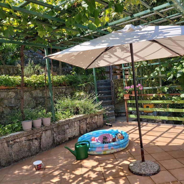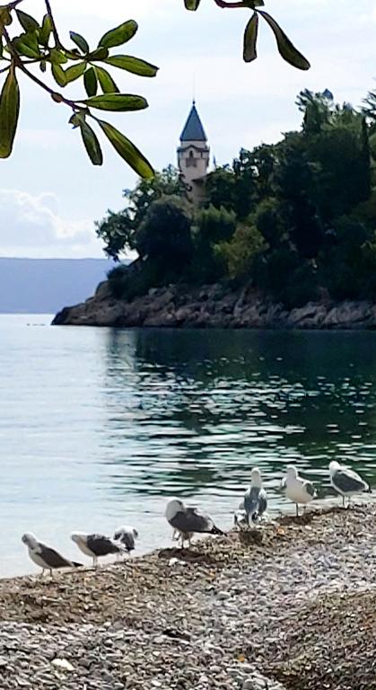 Kuća se nalazi u neposrednoj blizini čuvene plaže u Medveji, pogled na more iz apartmana i sa terasa. Iznad kuće prostiru se obronci Parka prirode Učka, obilje šetnica i mogućnosti za rekreaciju, kao i uživanje u prirodi. Blizina šetnice Lungomare i Opatije. Okućnica ograđena, parking unutar okućnice, više terasa sa vrtnim stolovima, grill na ugljen. Mogućnost najma više apartmana.